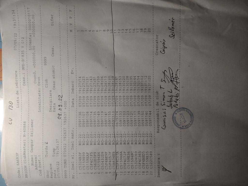 | 19 | Teglas Jozsef | CV377 | Ozun |