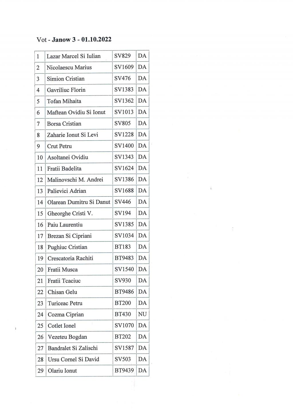 | 56 | Olari Gheorghe Si Gabriel | SV1775 | Radauti |