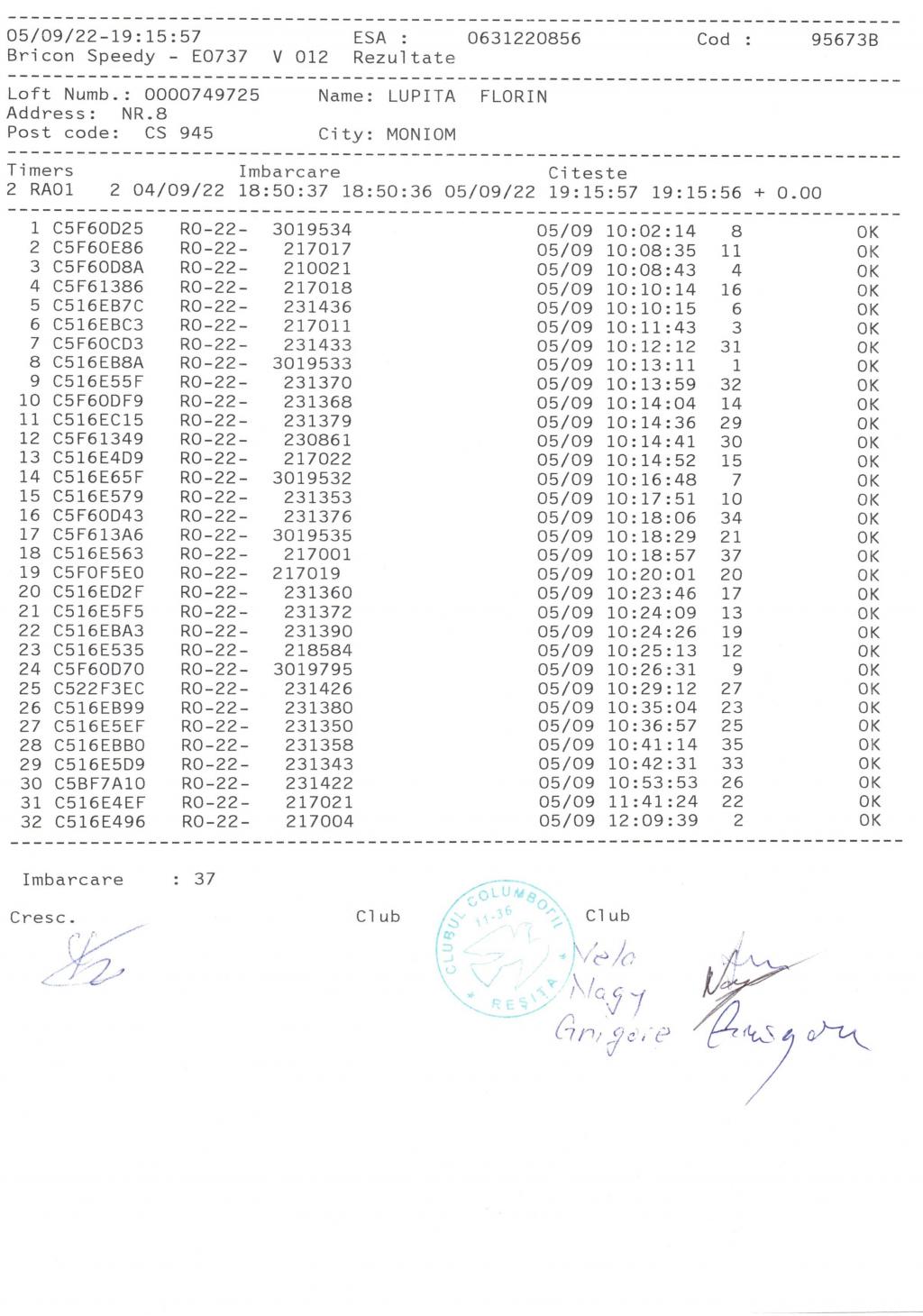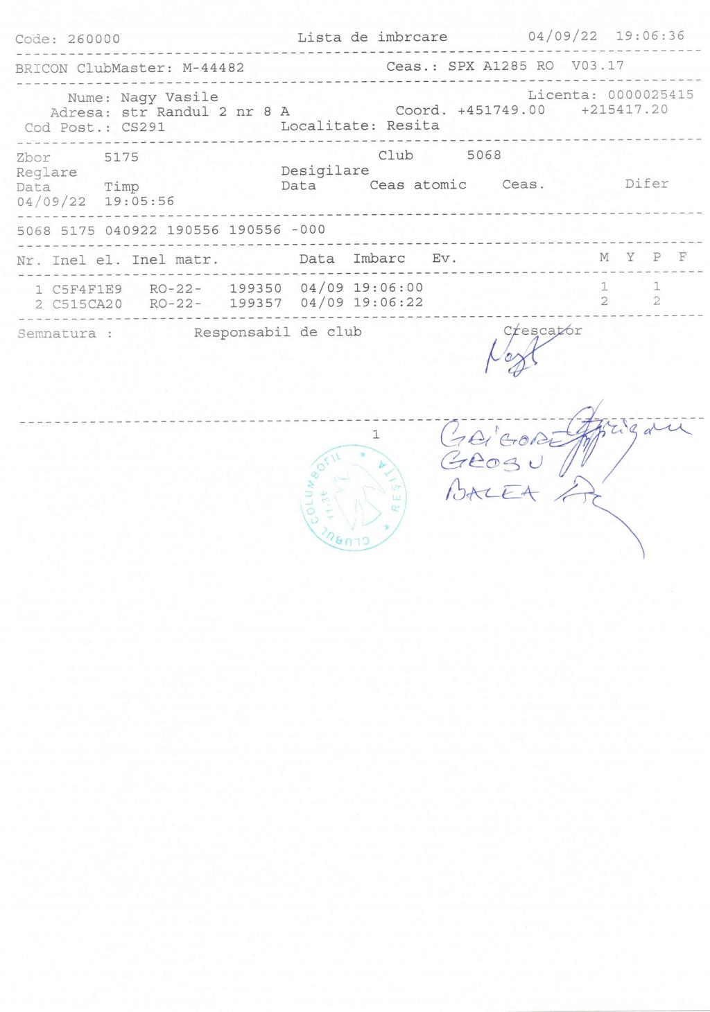 | 10 | Coseriu Silviu | CS844 | Bocsa | [IMB P0] | [DES P0] |