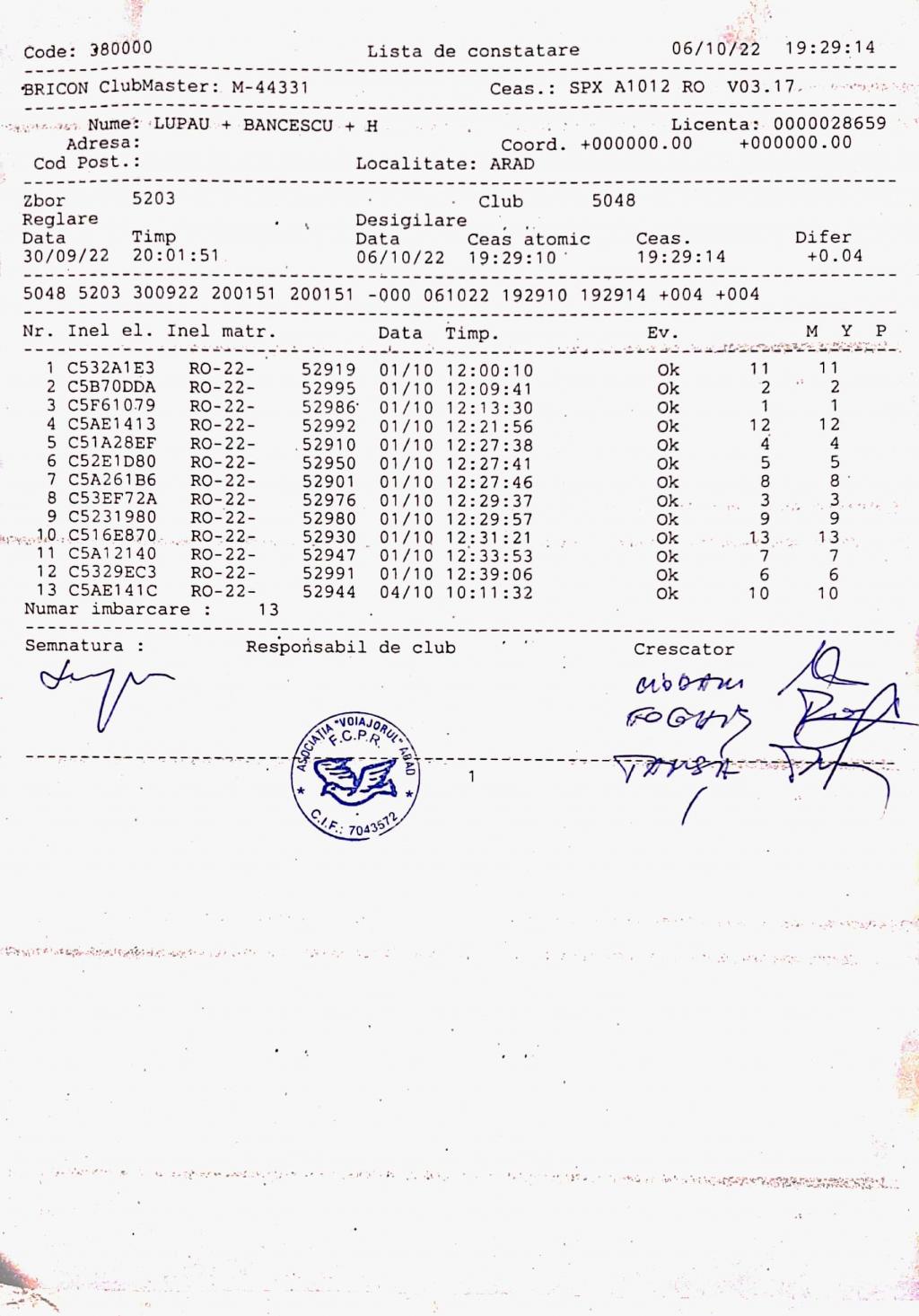 SIGILARE: [Sigilare club Ineu] [Desigilare ,AR 13 KJK Clubul Arad sosita de la Centrul Ineu] [Sigilare AR 13 KJK Centrul Arad etapa de Kecskemet] |