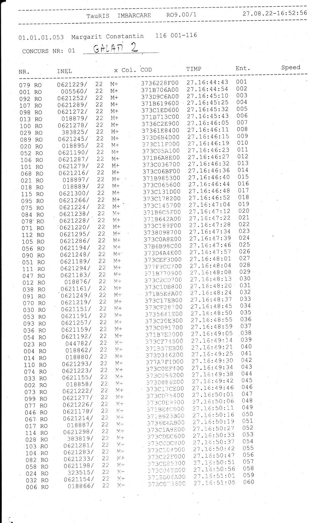 | 54 | Ionescu Mihai Jr | DB754 | Gaesti |