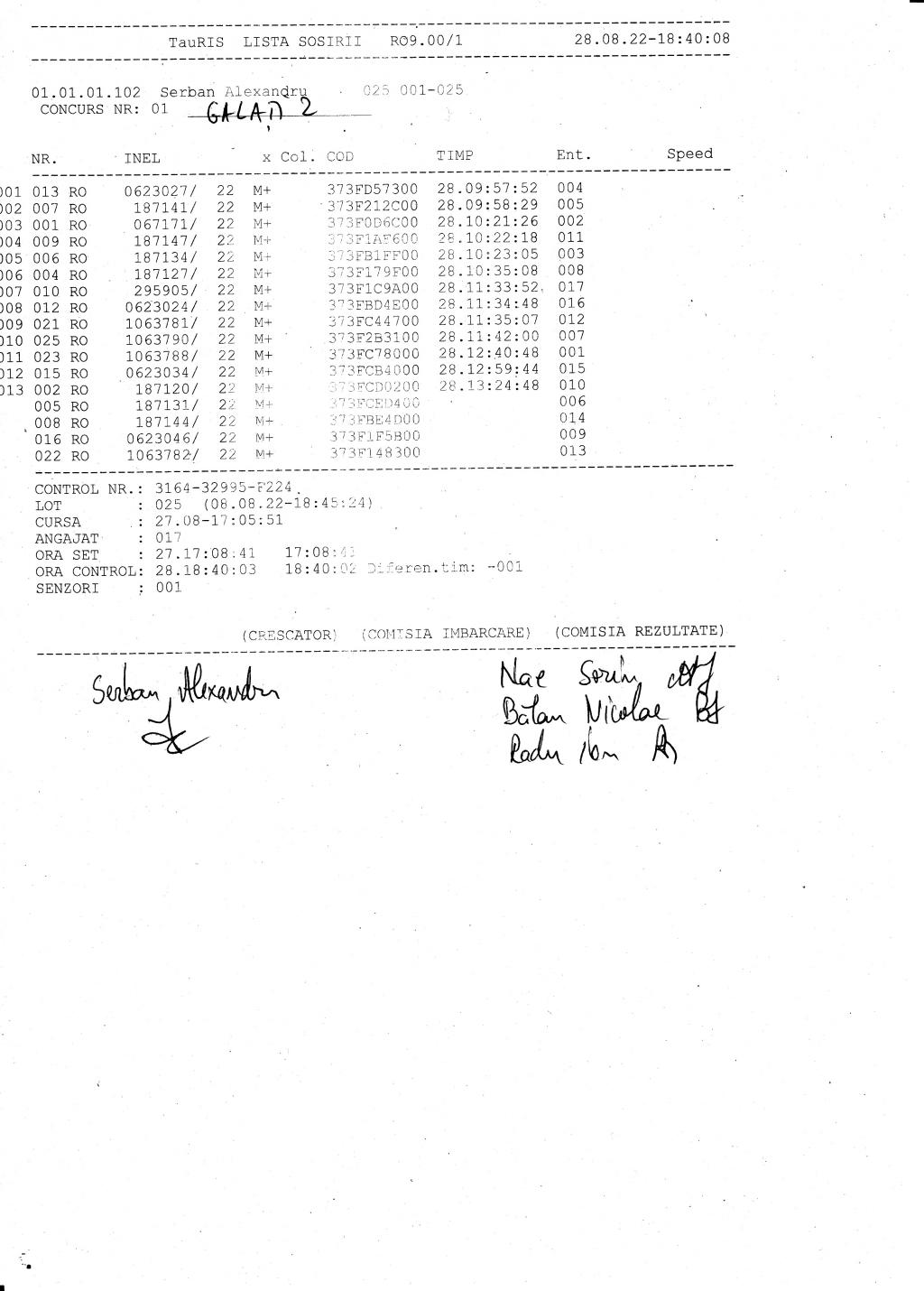| 106 | Negutu Alexandru Silviu | DB823 | Top Pigeon Lunguletu |