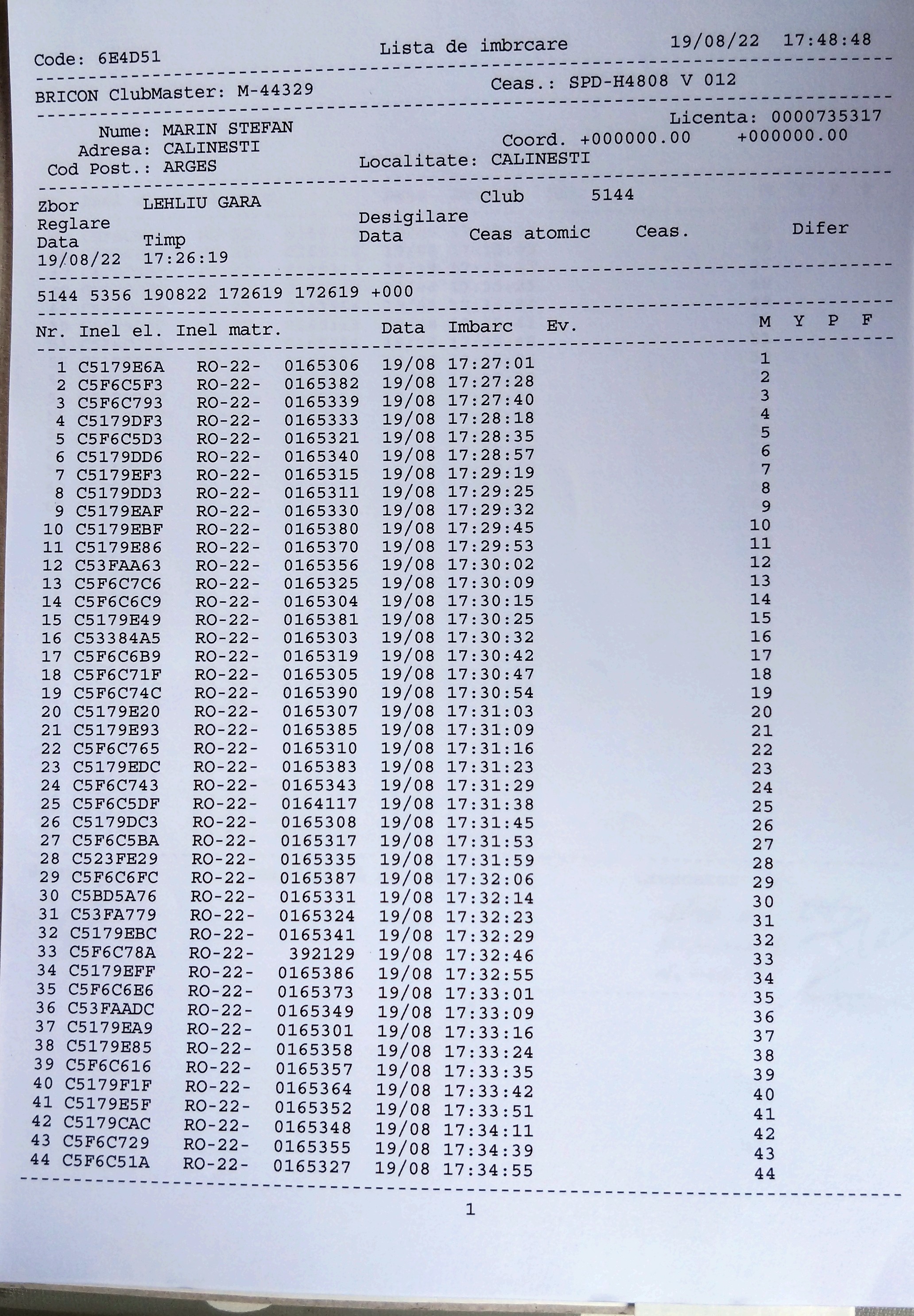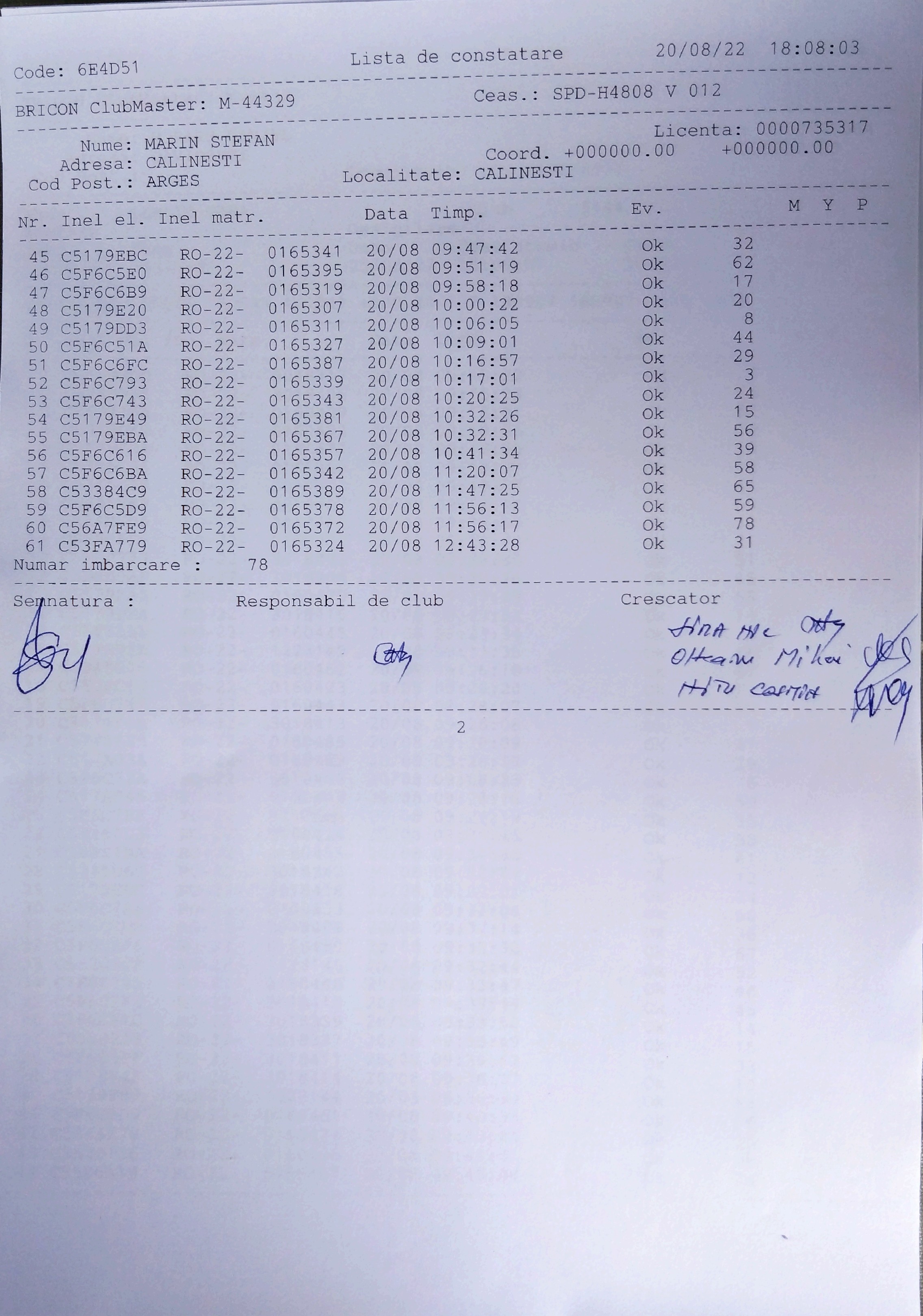 | 1. Procese verbale de imbarcare: | |||||