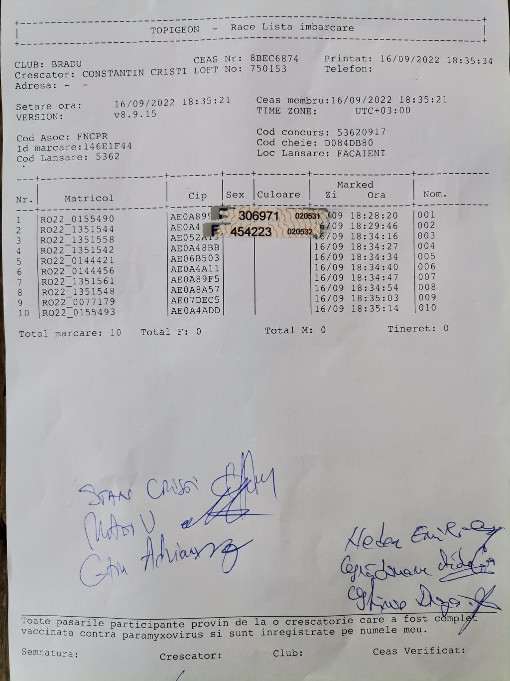 SIGILARE: [Sigilare Costesti] [Sigilare ma?in? et.5 F?c?eni Centrul ?tef?ne?ti ] RECLEMARE: [Aplicare sticker la porumbelul d-lui Marin Stefan ] [Aplicare sticker la porumbelul d-lui Bejan Alin ] [RECLEMARE CONSTANTIN CRISTI] SIGILARE: [DESIGILARE MASINA SOSITA DE LA COSTESTI] [SIGILARE FACAENI] [Desigilare centru Pite?ti ] [Sigilare etapa Facaeni] |