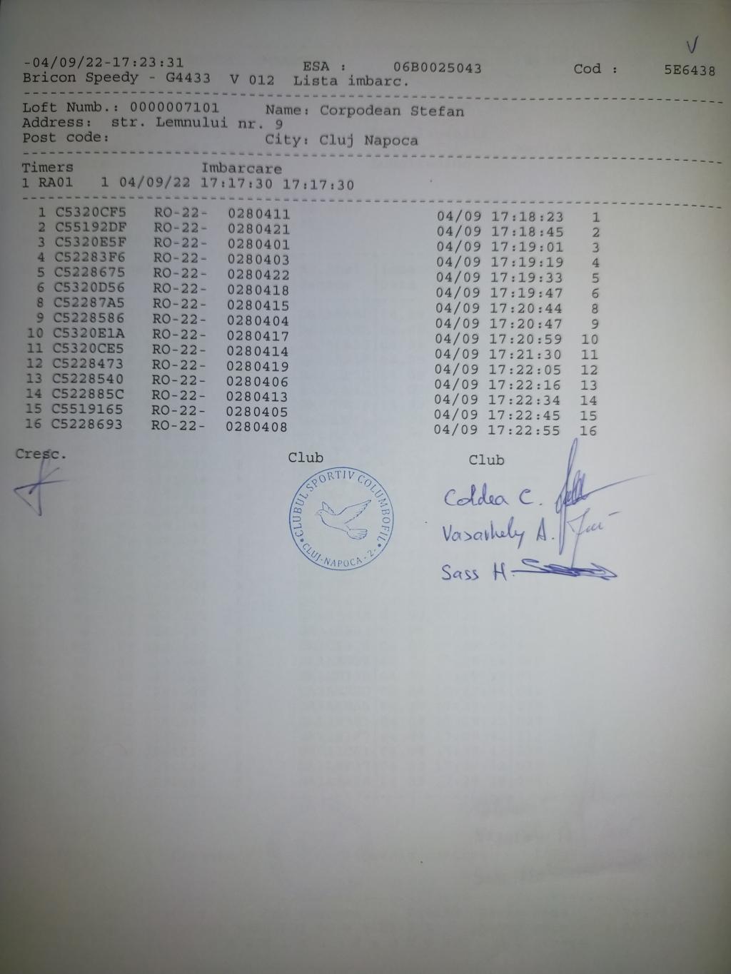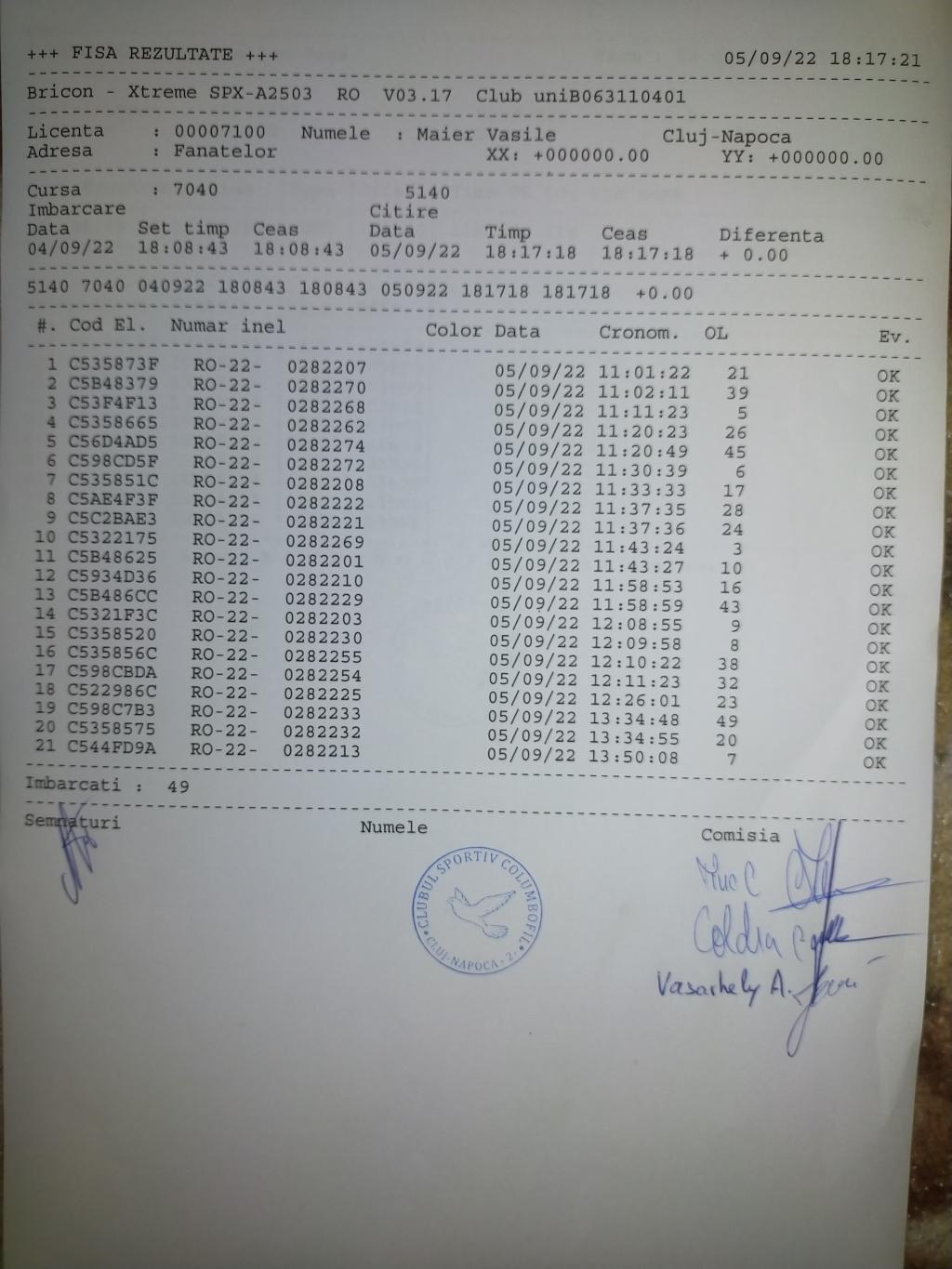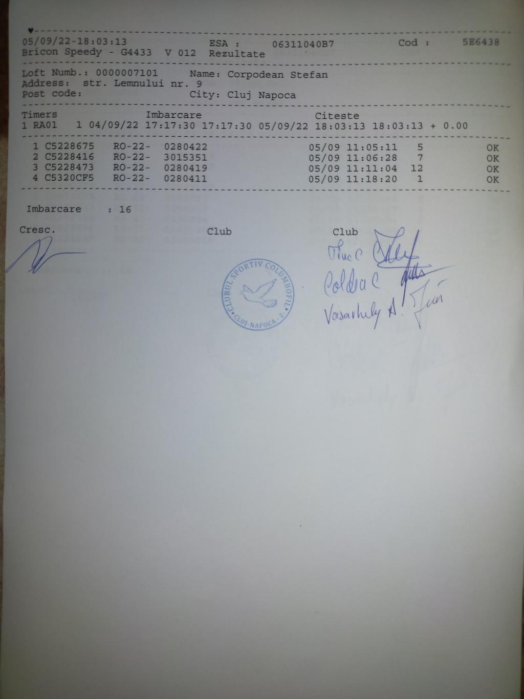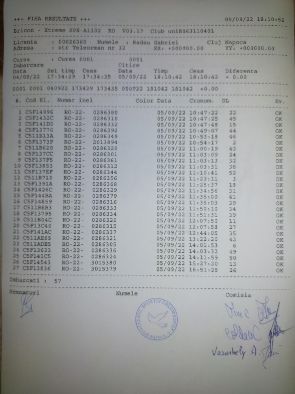 | 5 | Faur Ciprian | CJ302 | Cluj-napoca |