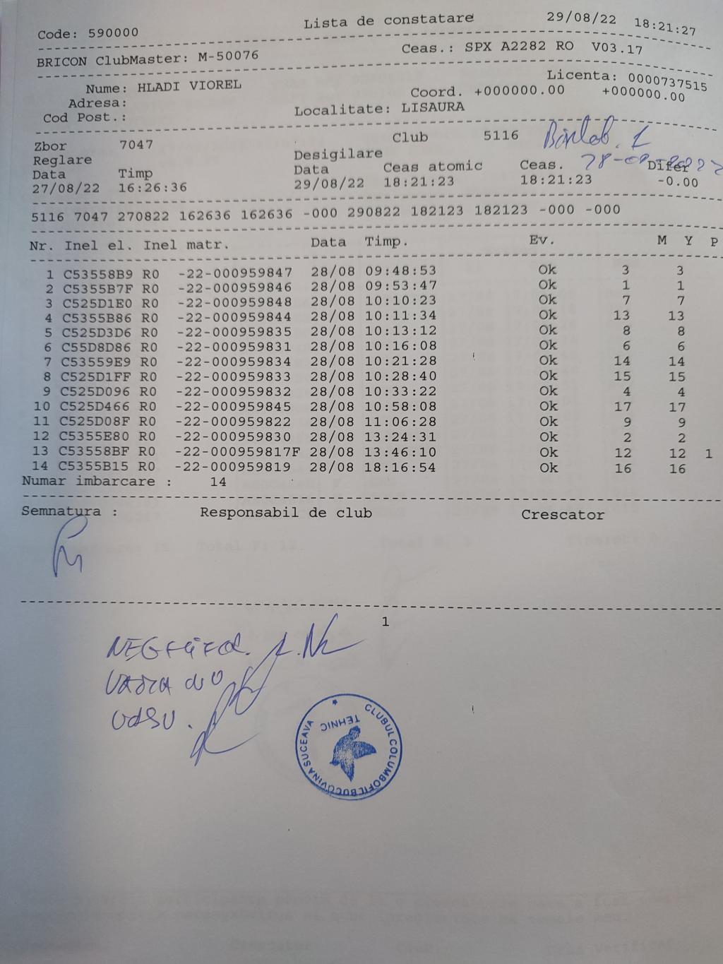 | 11 | Hladi Viorel | SV1042 | Bucovina Suceava | [IMB P0] | [DES P0] |