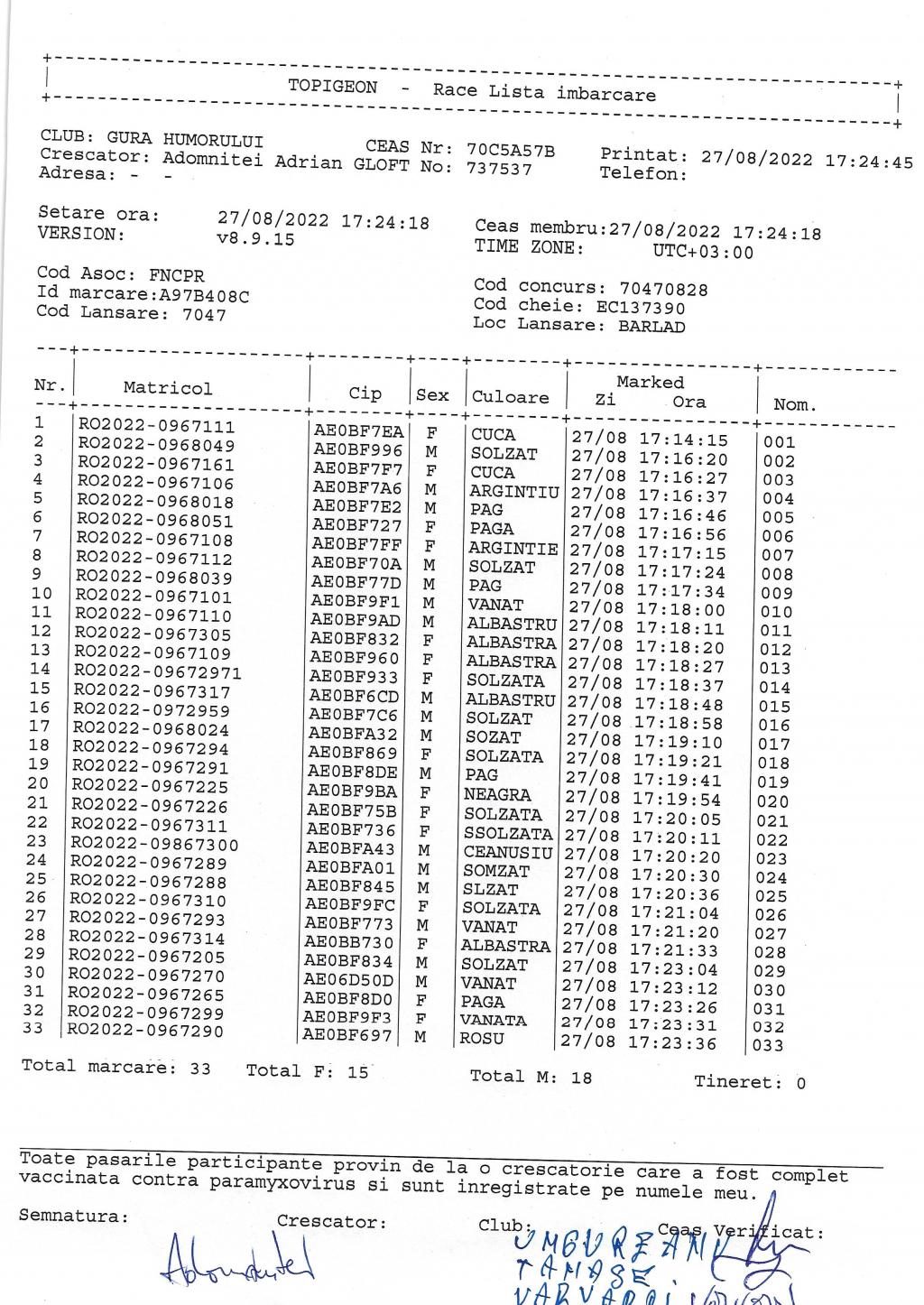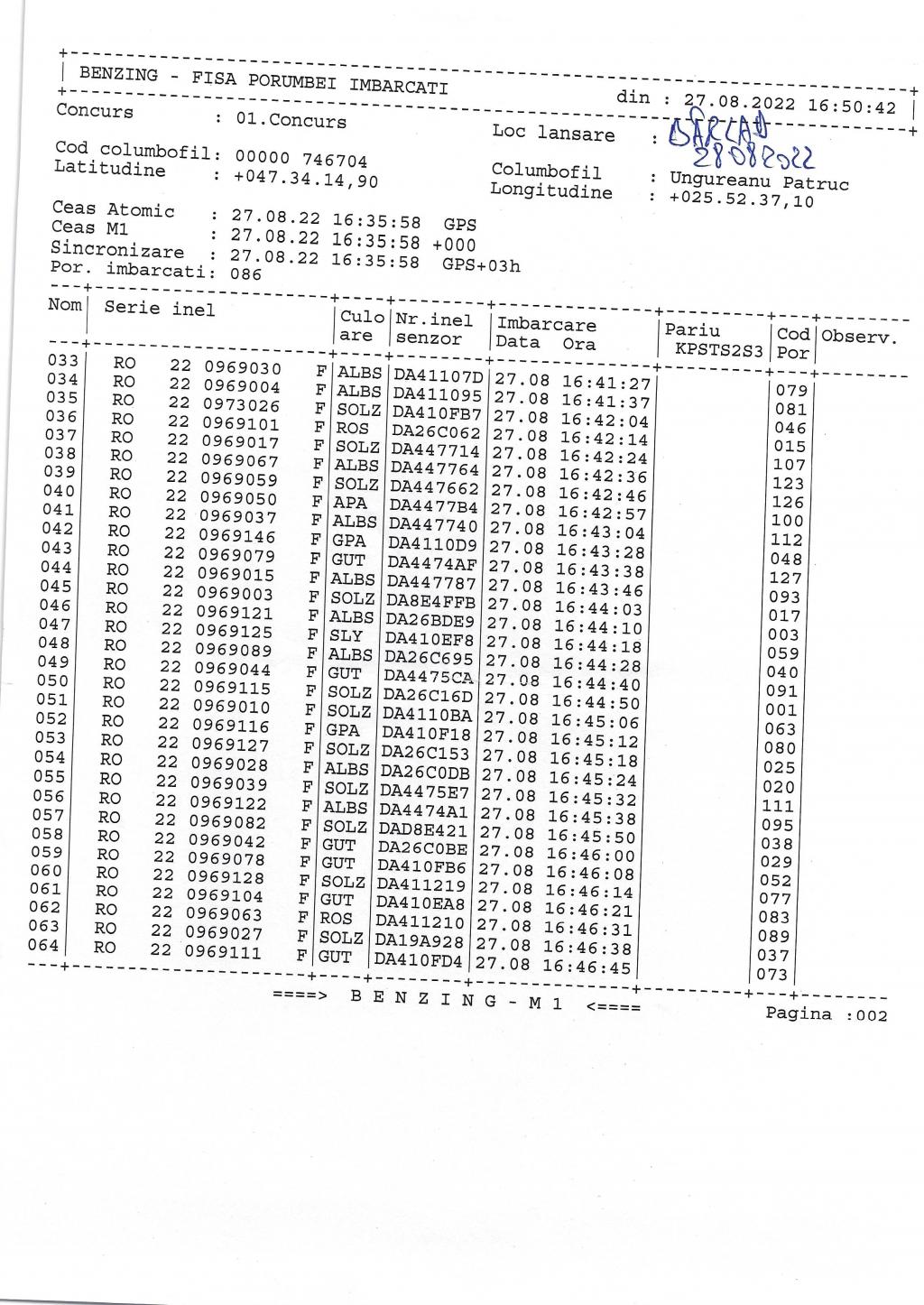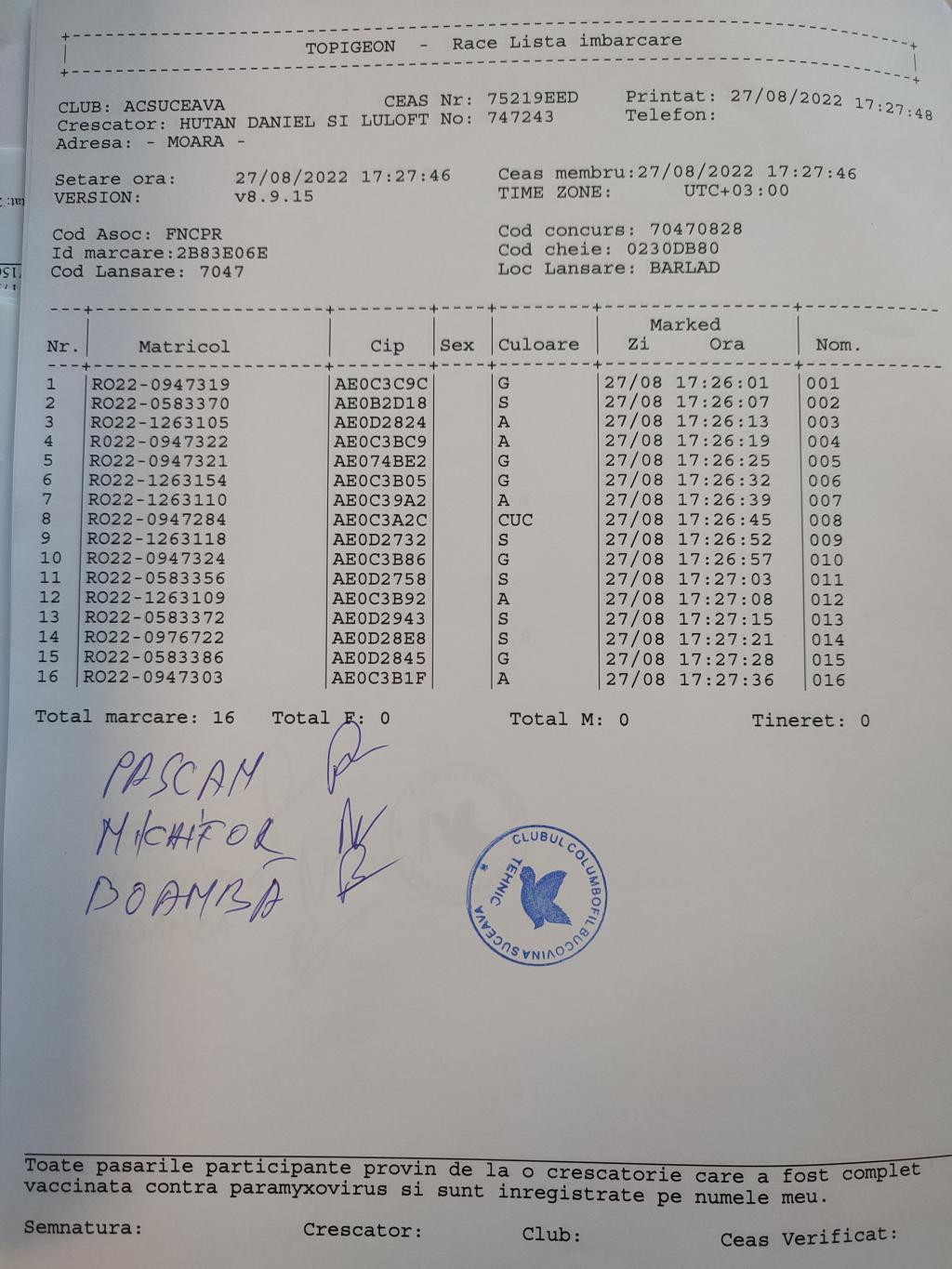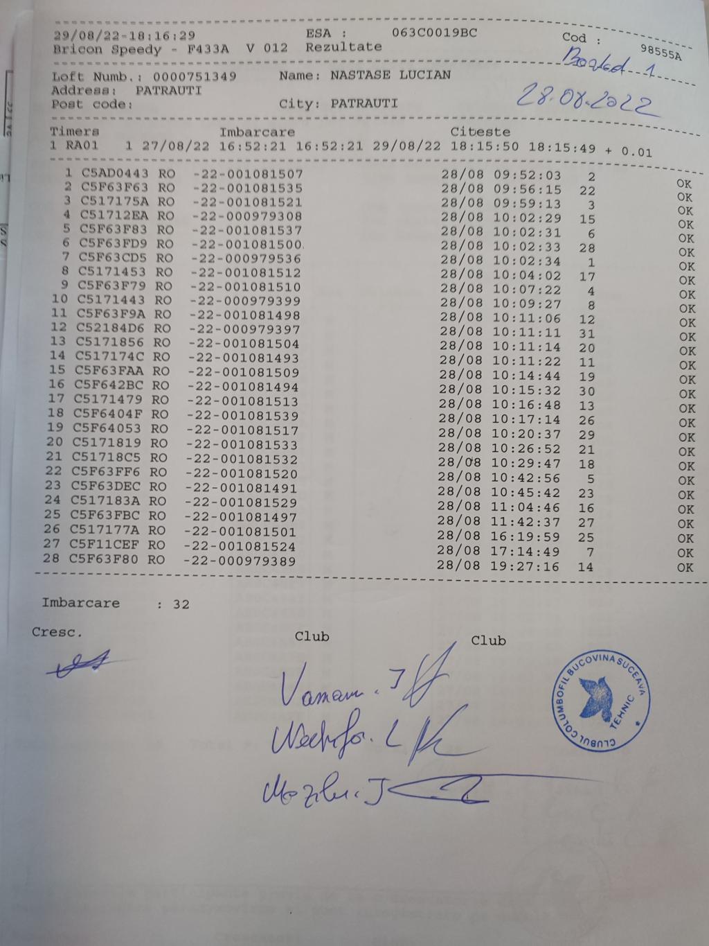 | 32 | Varasciuc Ciprian | SV1796 | Bucovina Suceava | [IMB P0] | [DES P0] |