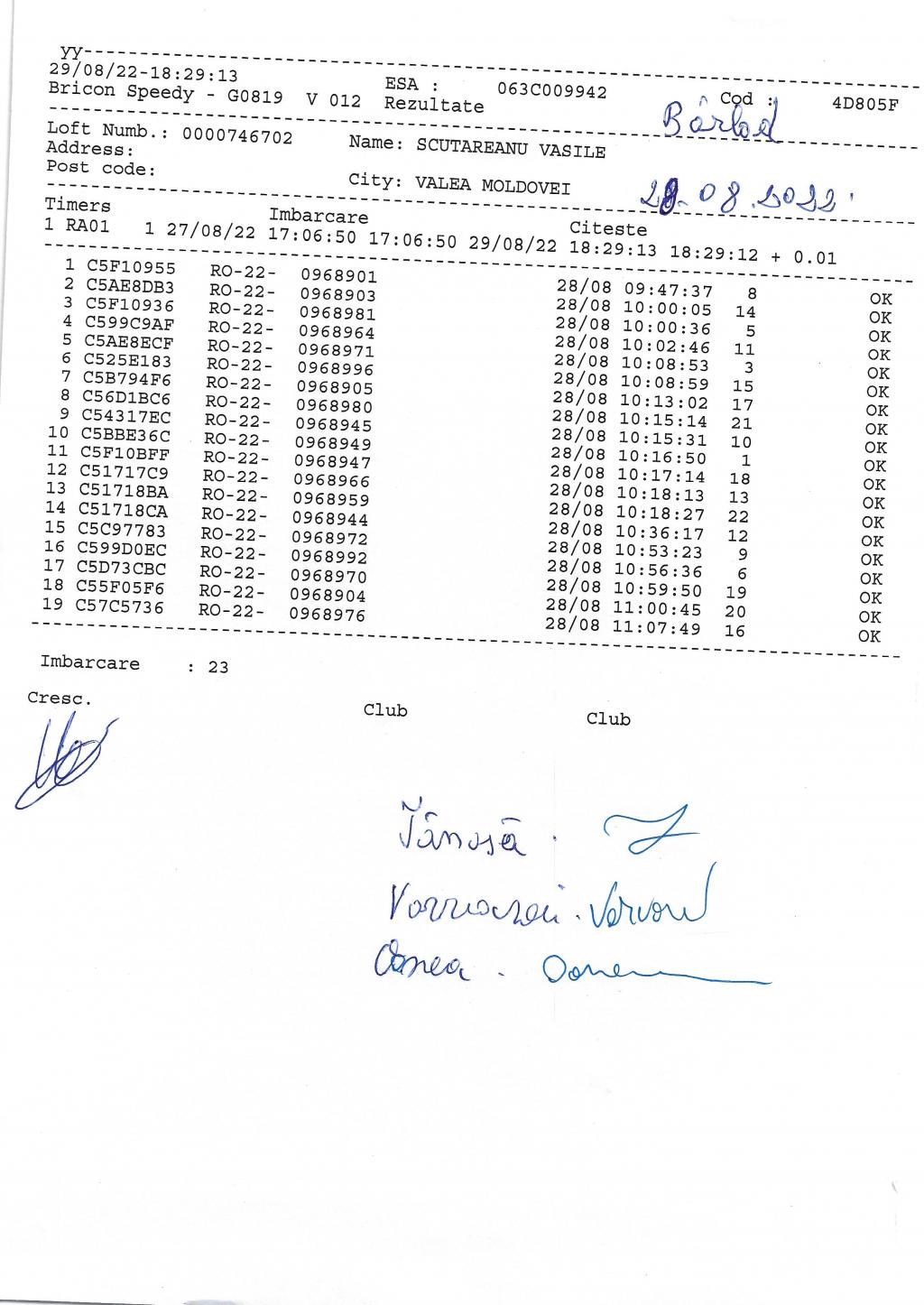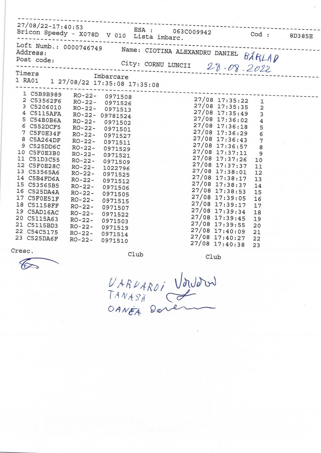 | 77 | Schipor Constantin Si Gheorghe | SV1764 | Elite Vicov | [IMB P0] | |