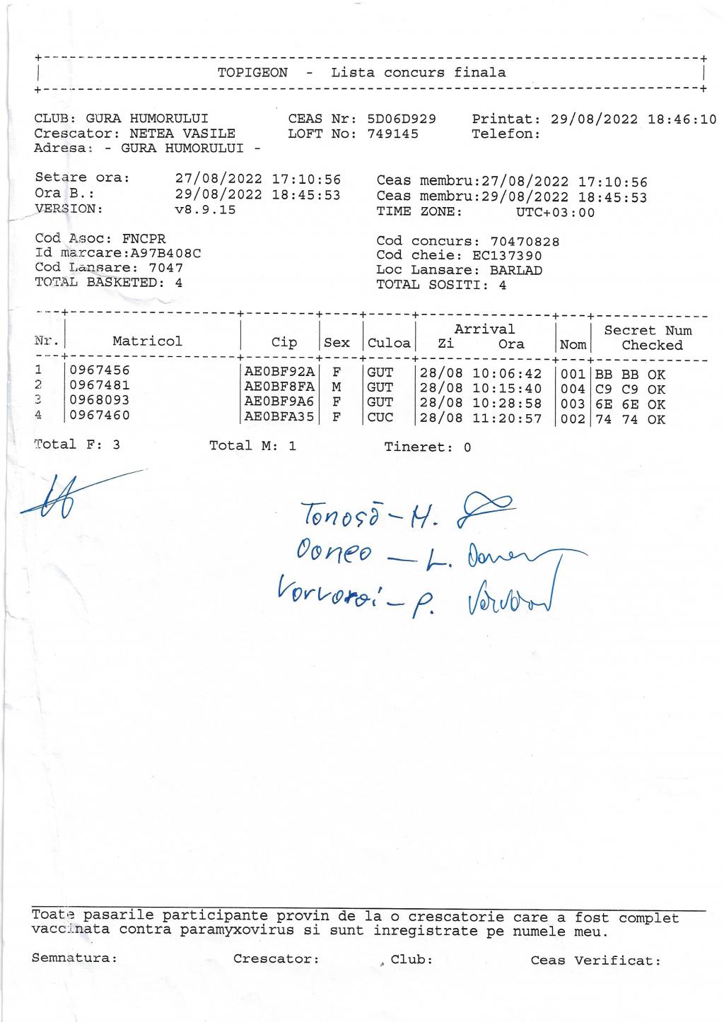 | 165 | Netea Vasile | SV1593 | Gura Humorului |