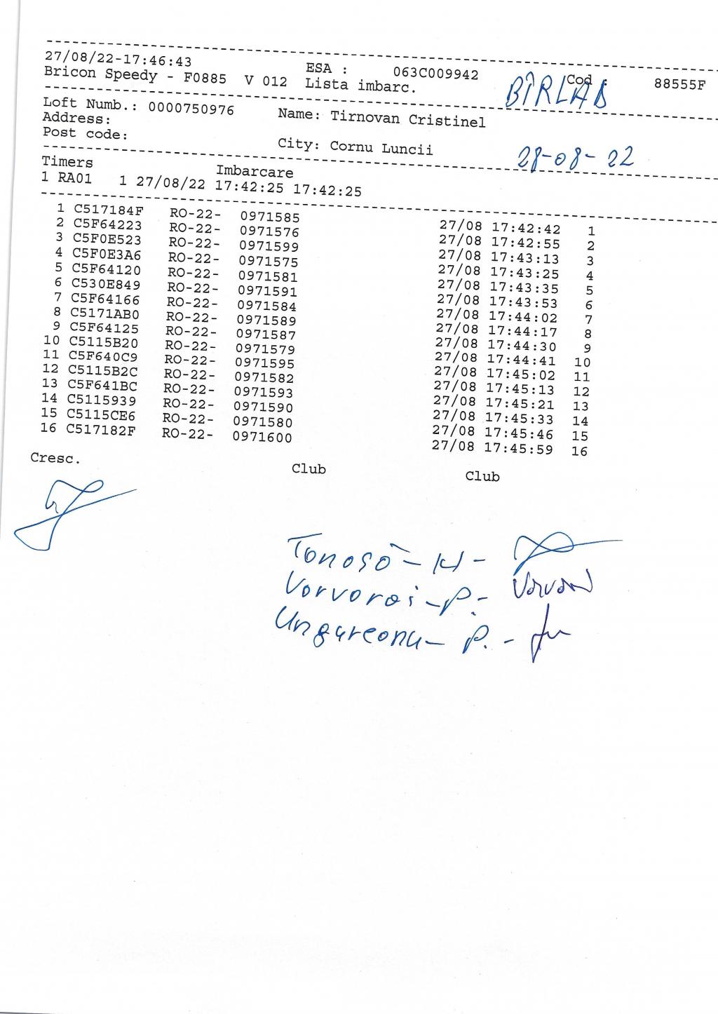 | 22 | Oniciuc Florin | SV1008 | Bucovina Suceava |