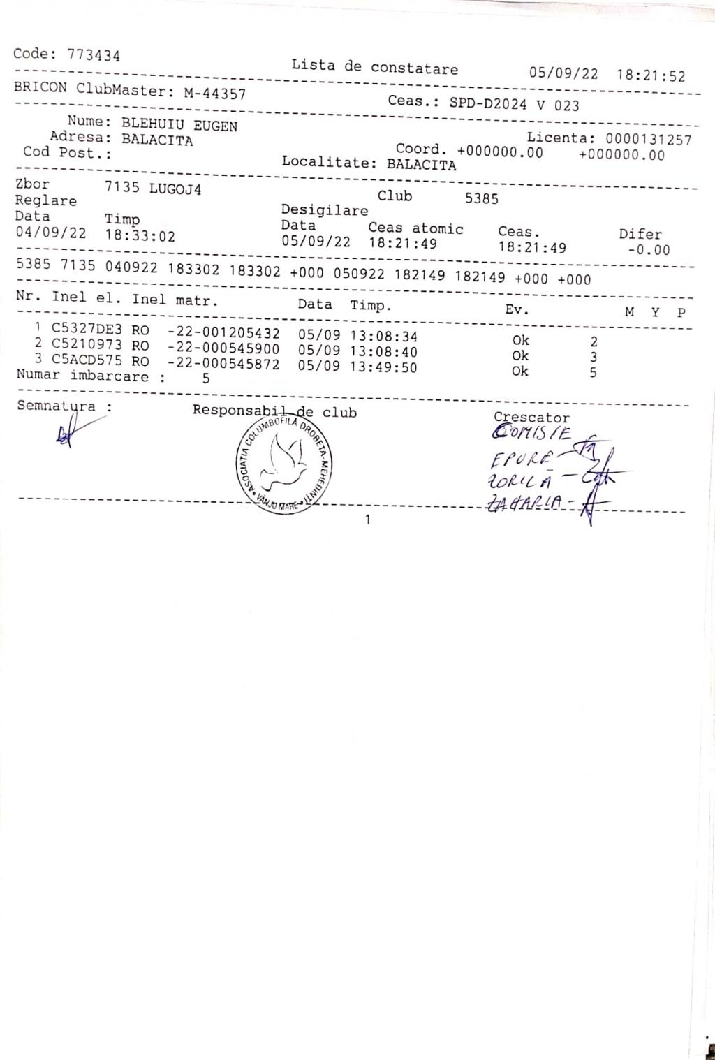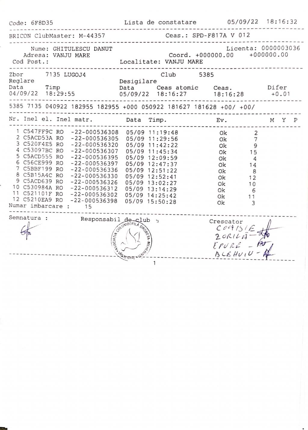 | 3 | Barbulescu Virgil | MH981 | Cerneti | [IMB P0] | [DES P0] |