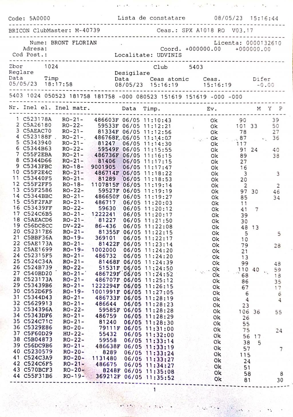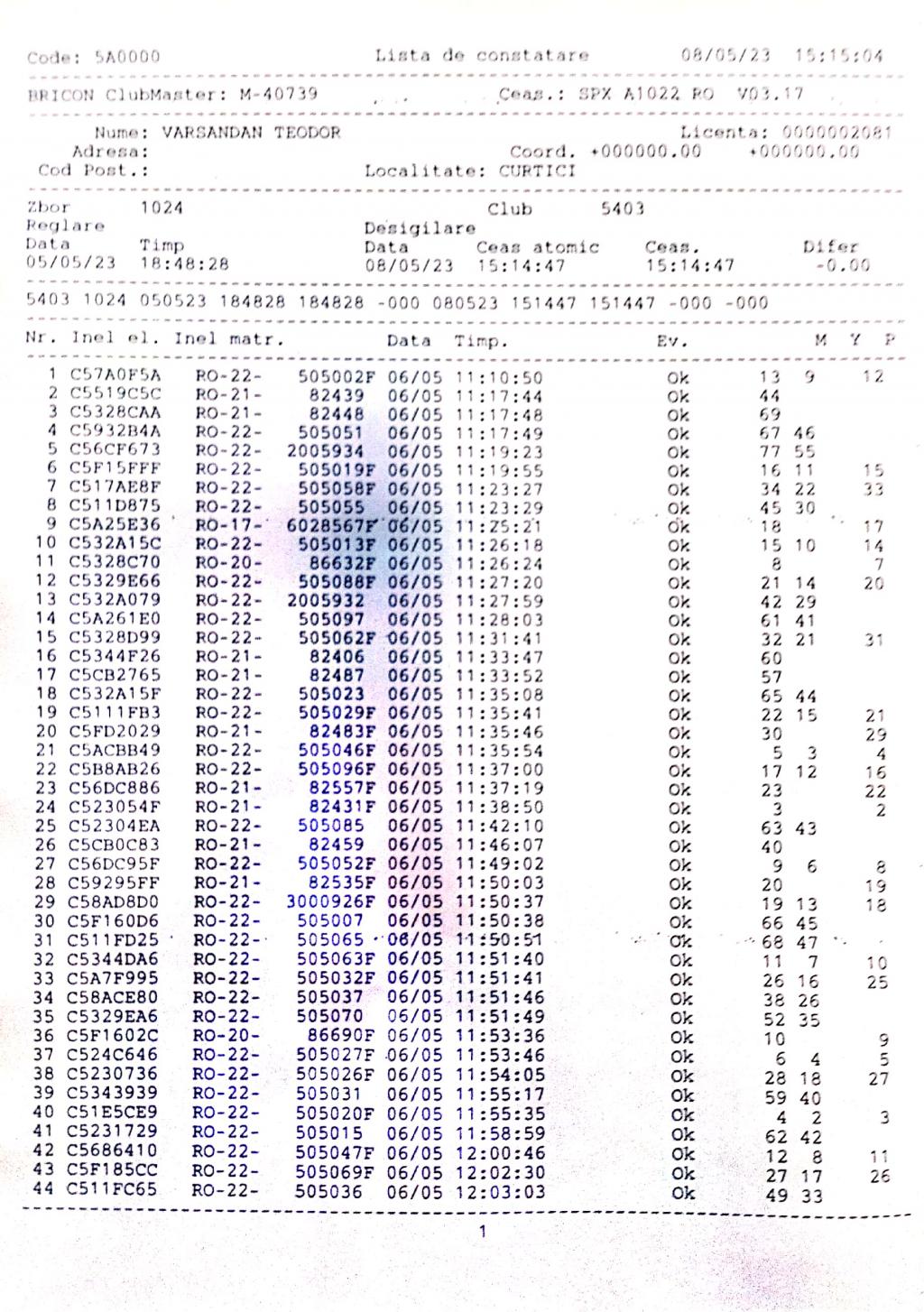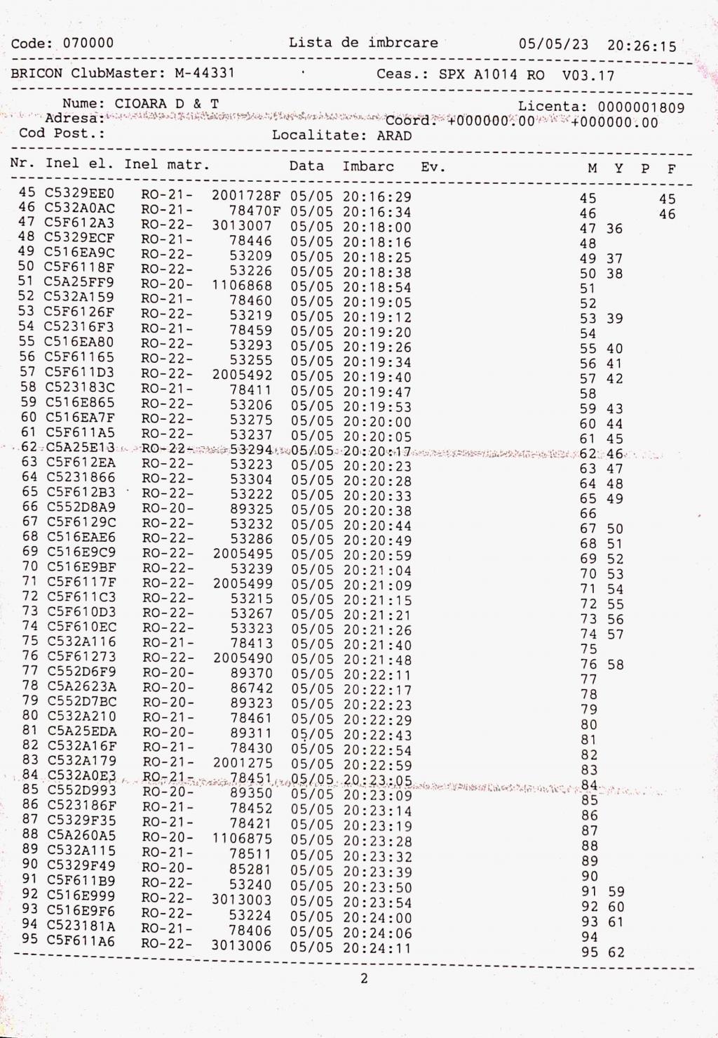 1. Procese verbale de imbarcare: | |||||