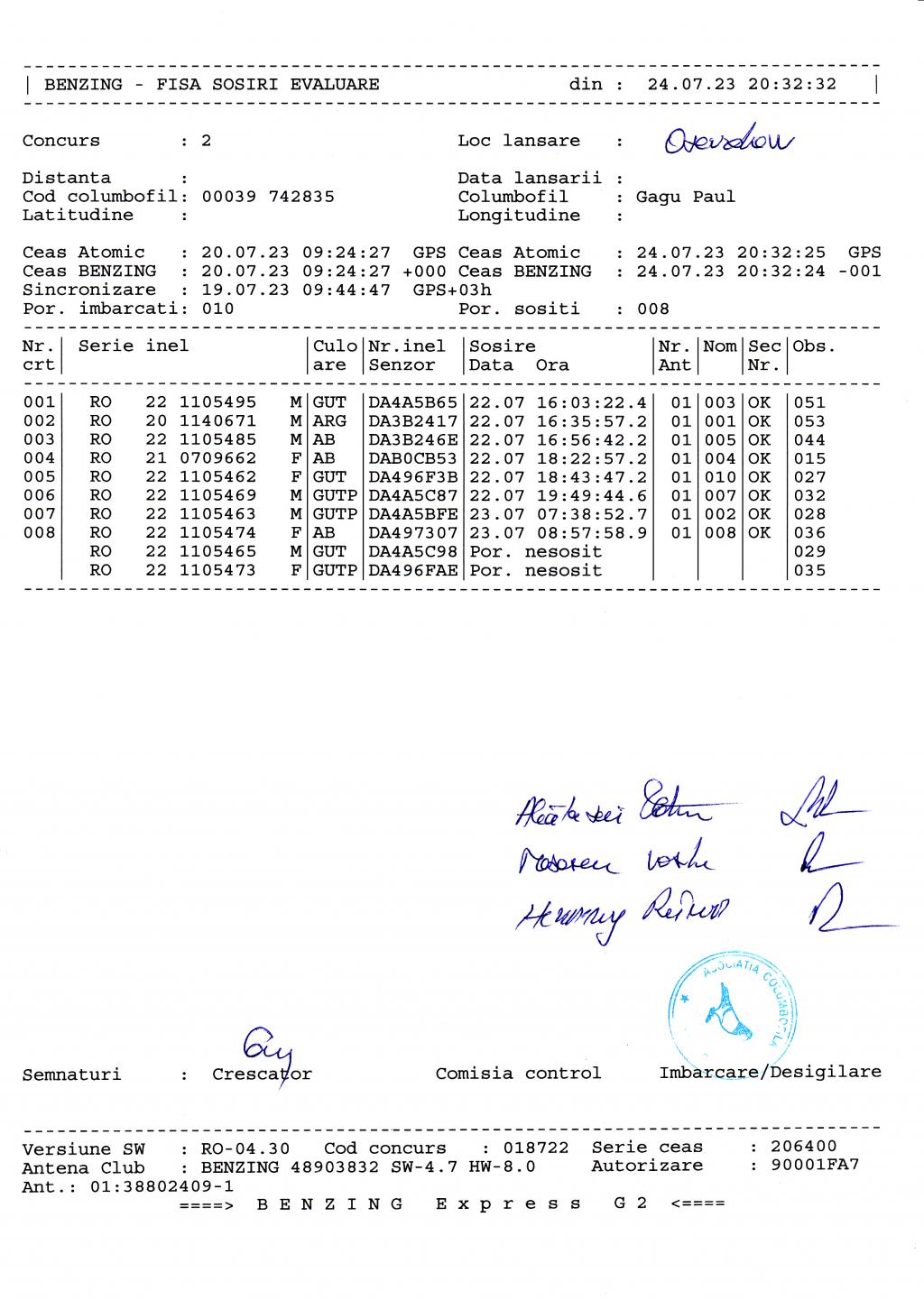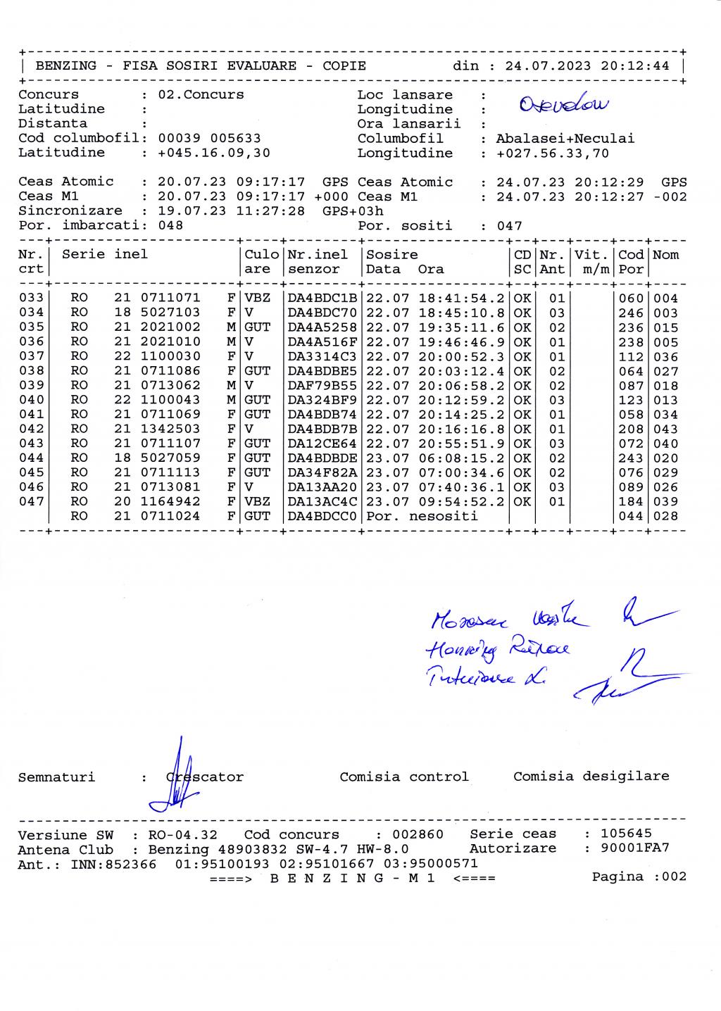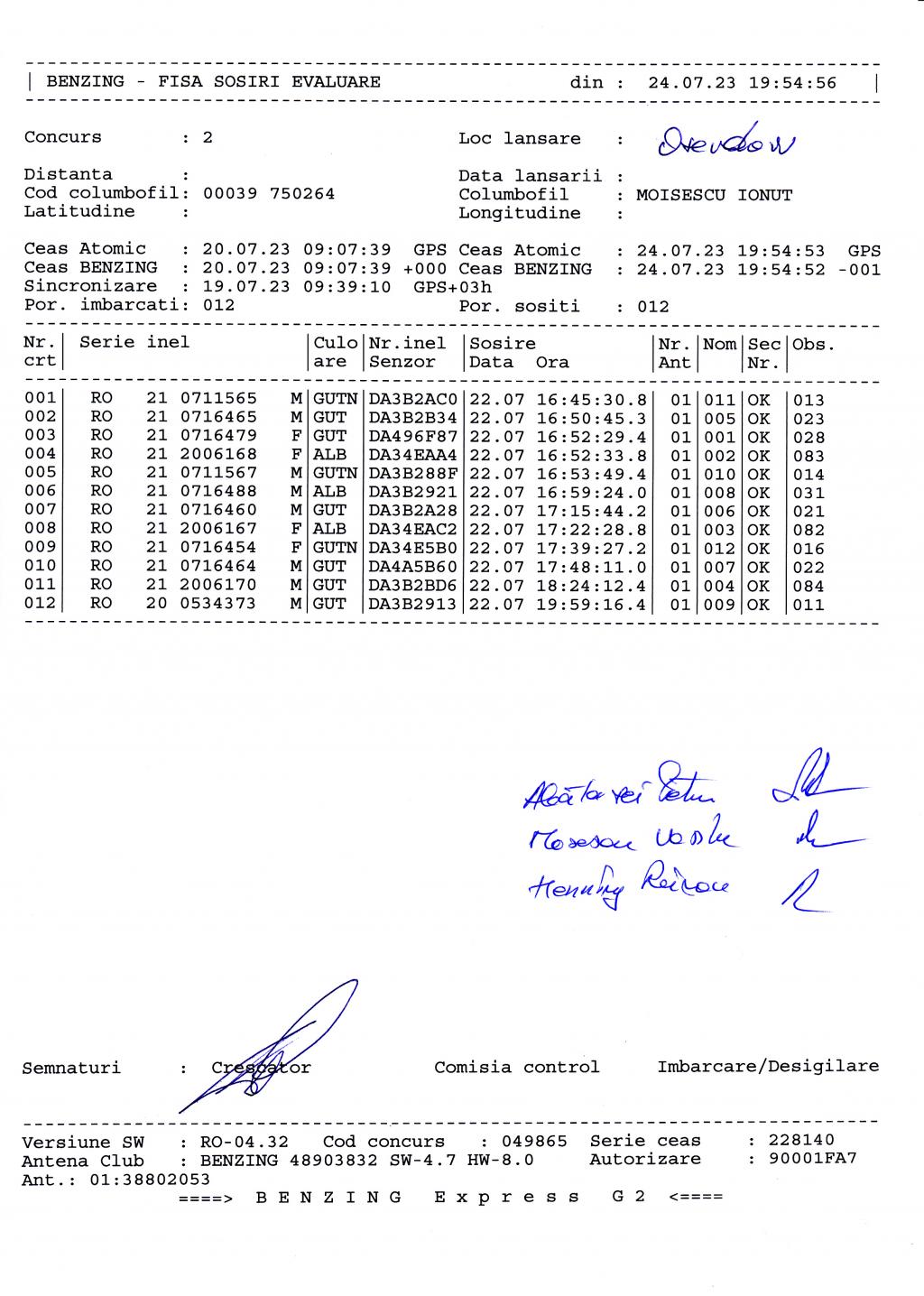 | 105 | Gontescu George | BZ9976 | BEN | Ramnicu Sarat | [IMB P0] | [DES P0] |