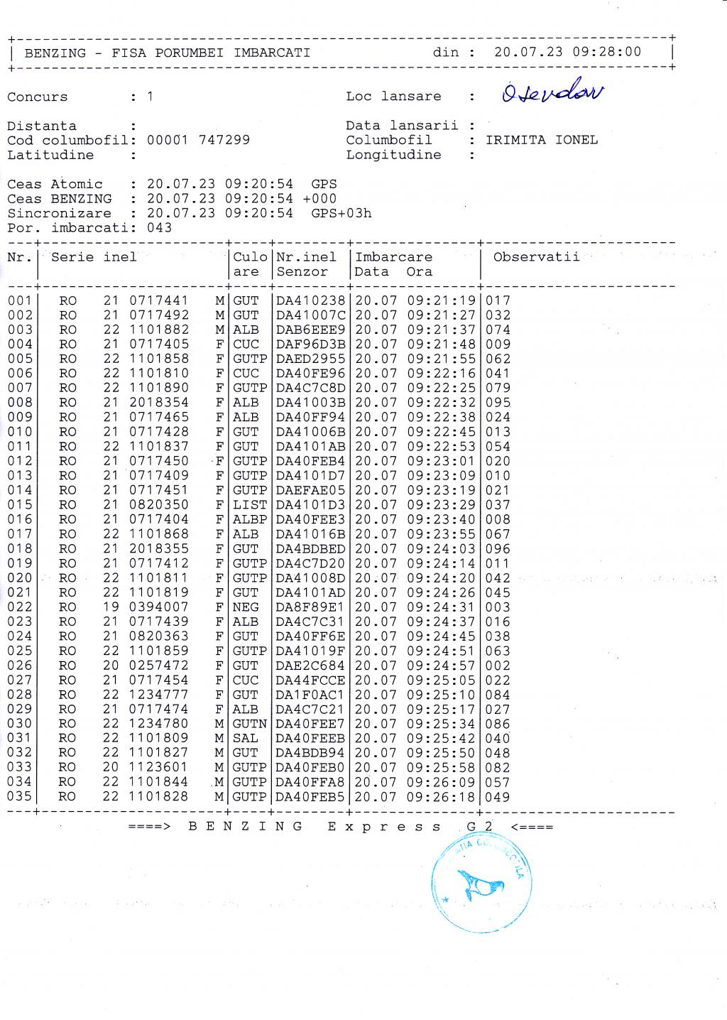 | 20 | Gabi Pigeons | BR327 | BEN | Braila | [IMB P0] | [DES P0] |