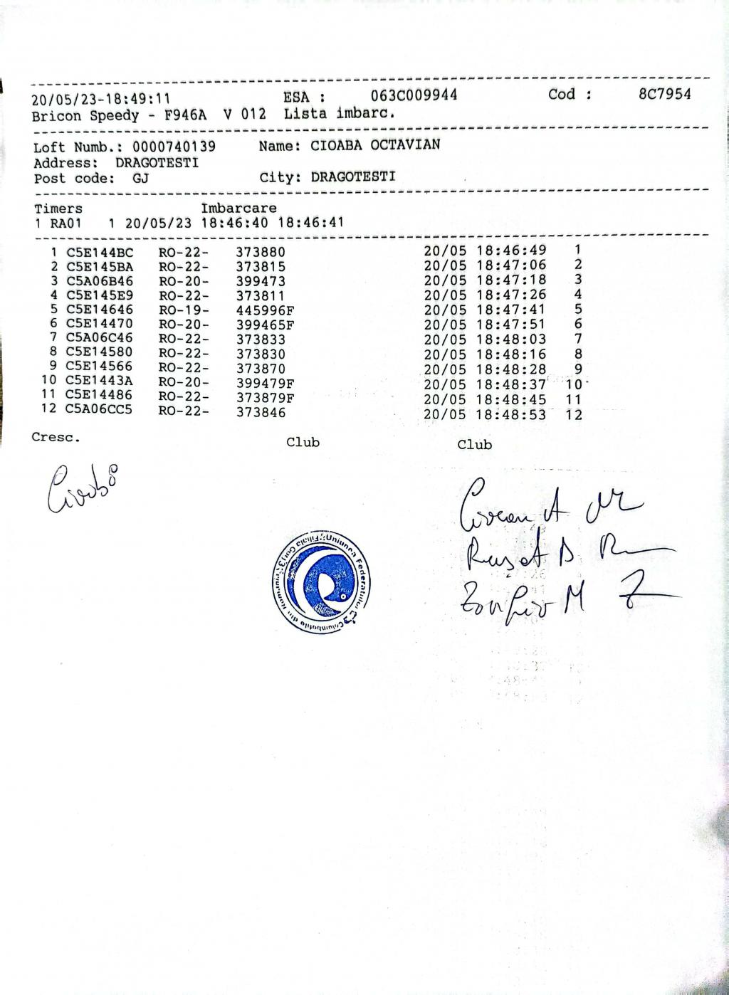 156 | Ciocan Andrei & Mihaela | GJ678 | BRI | Turceni | [IMB P0] | [DES P0] |