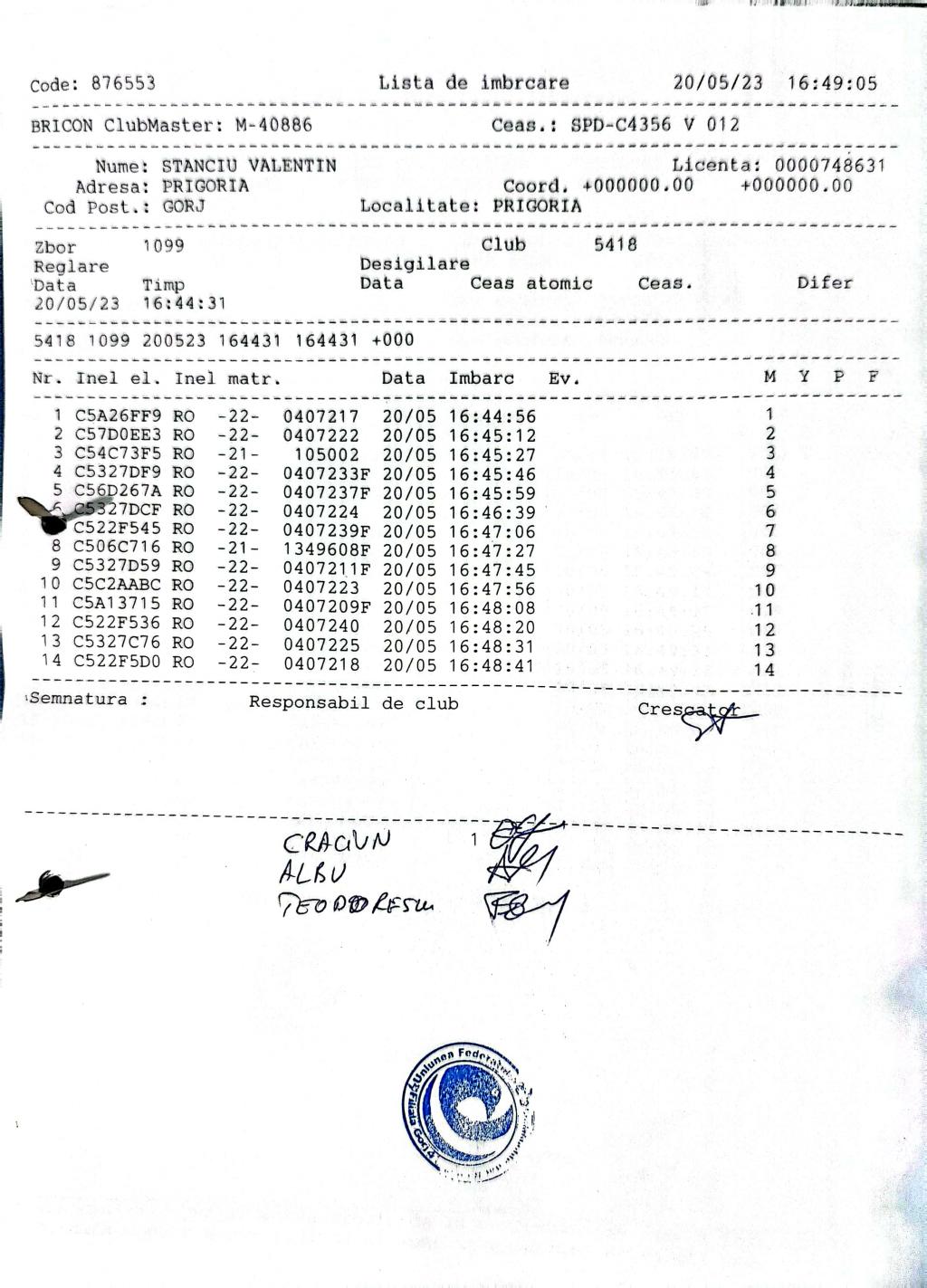 182 | Ancuteru Adrian | GJ704 | TOP | Voiajorul Motru |