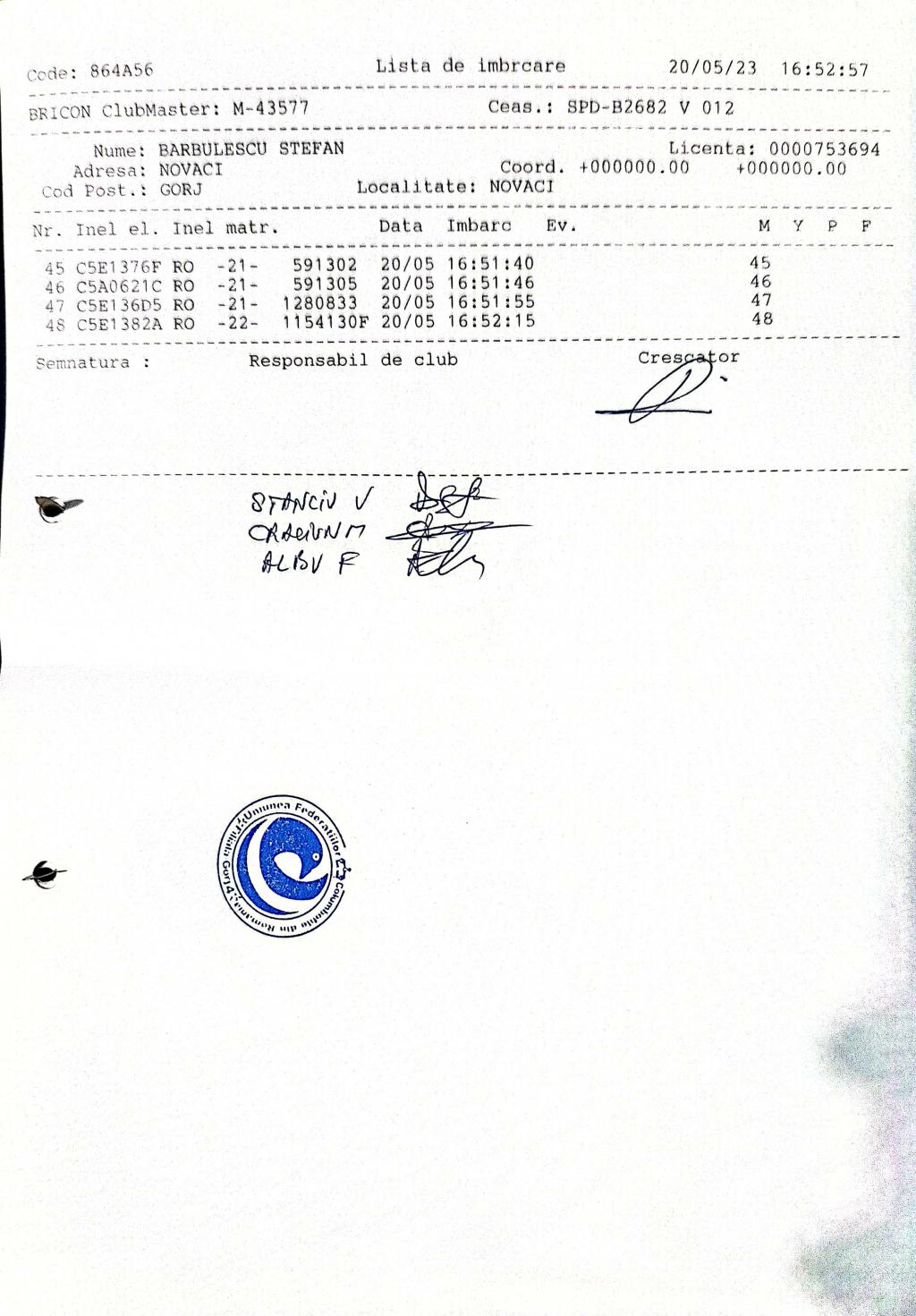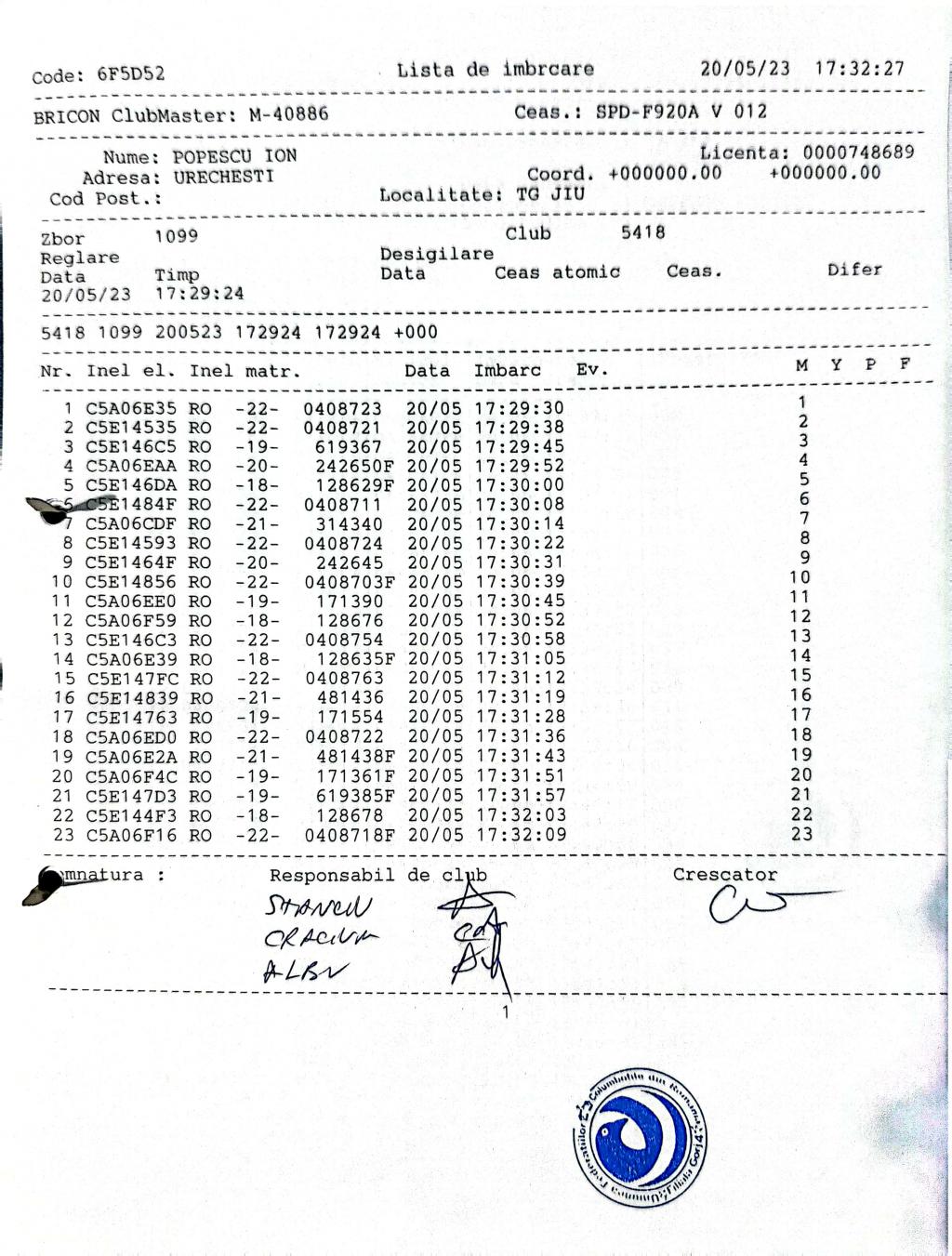168 | Popescu Dorel | GJ778 | BRI | Turceni | [IMB P0] | [DES P0] |