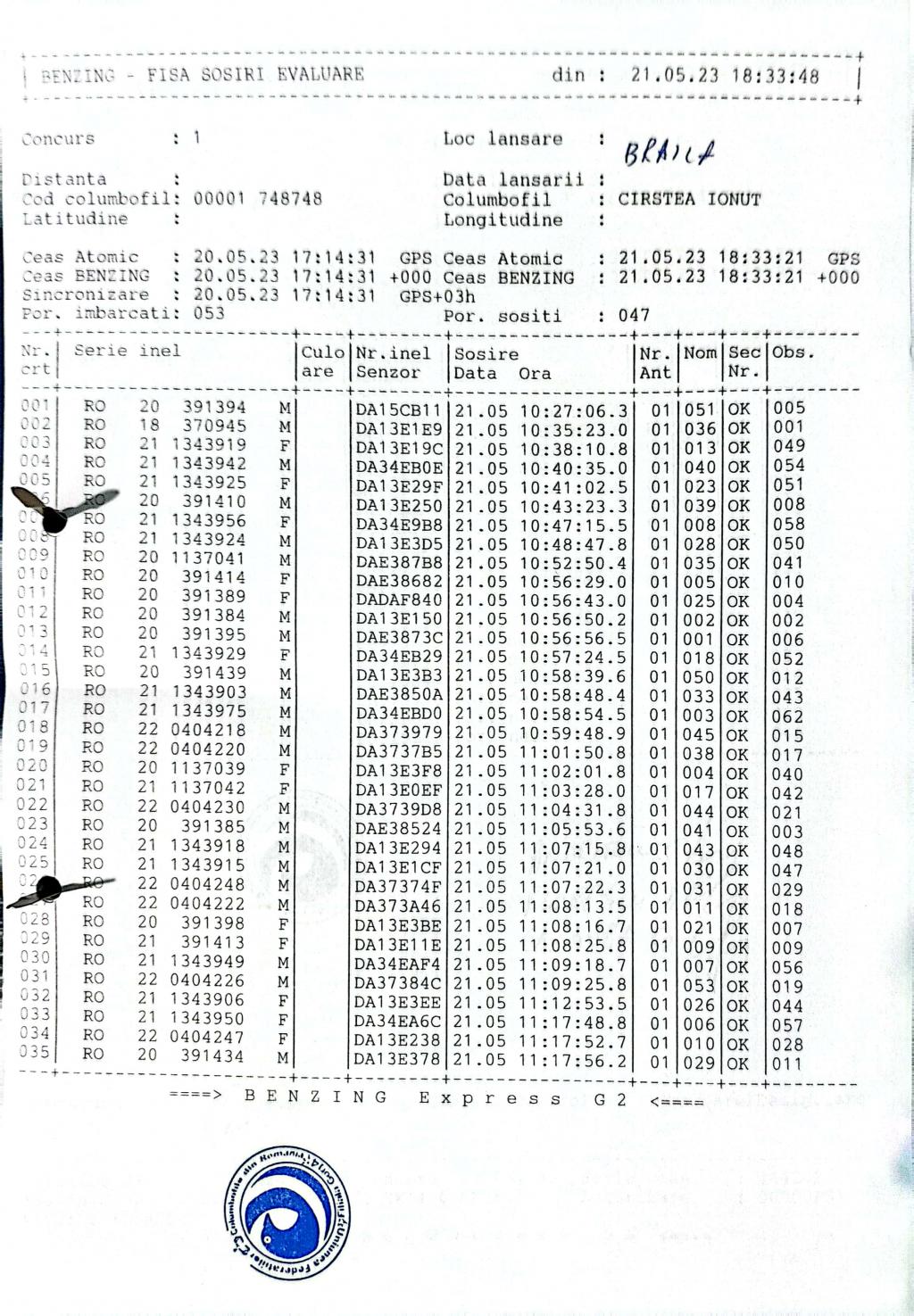 69 | Smarandoiu Marian | GJ807 | BEN | Strehaia Est | [IMB P0] [IMB P1] | [DES P0] [DES P1] |
