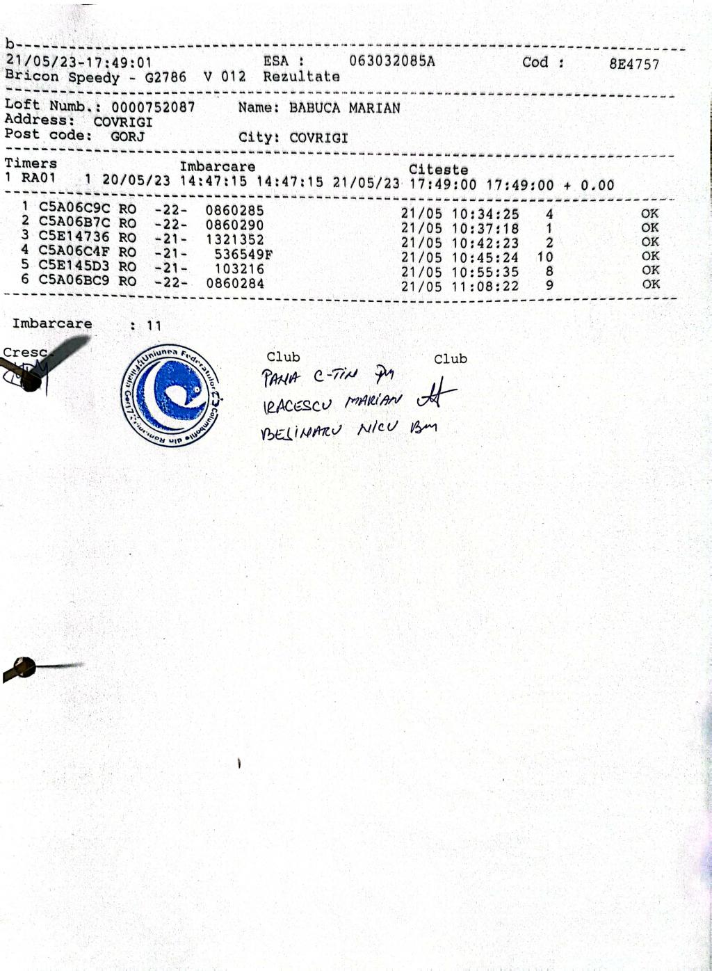 183 | Babuca Marian | GJ759 | BRI | Voiajorul Motru | [IMB P0] | [DES P0] |