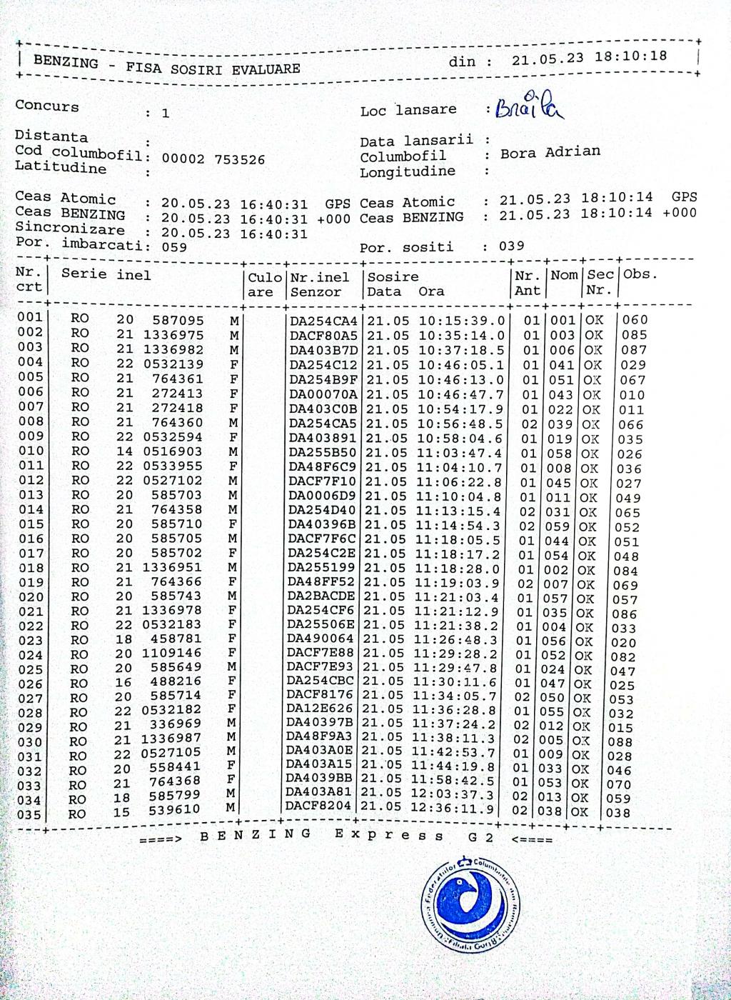 45 | Bora Adrian | GJ820 | BEN | Strehaia Est | [IMB P0] [IMB P1] | [DES P0] [DES P1] |