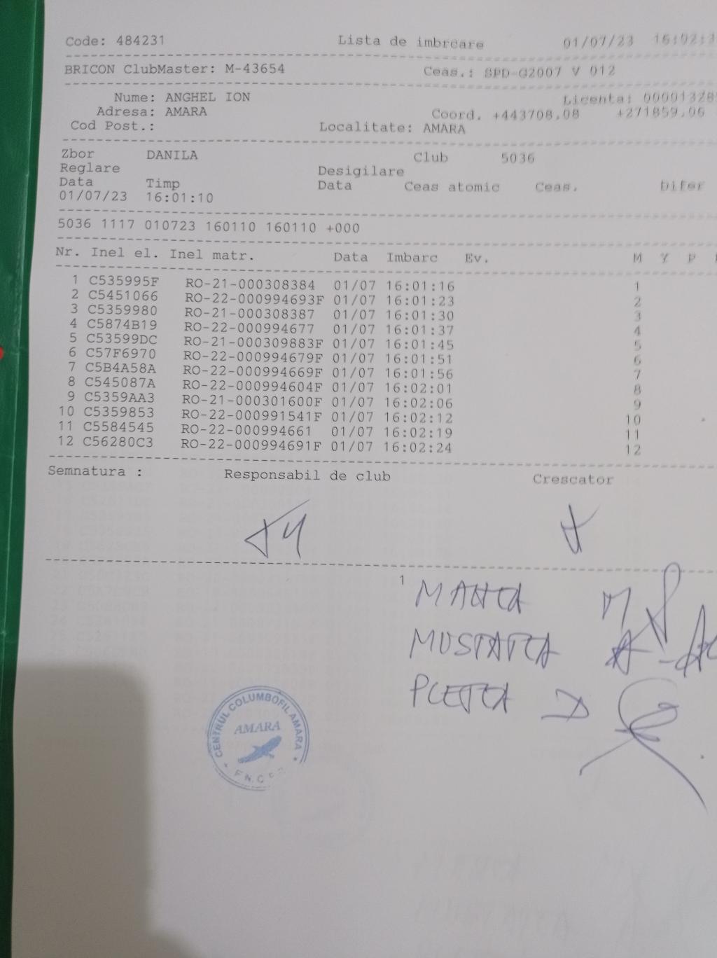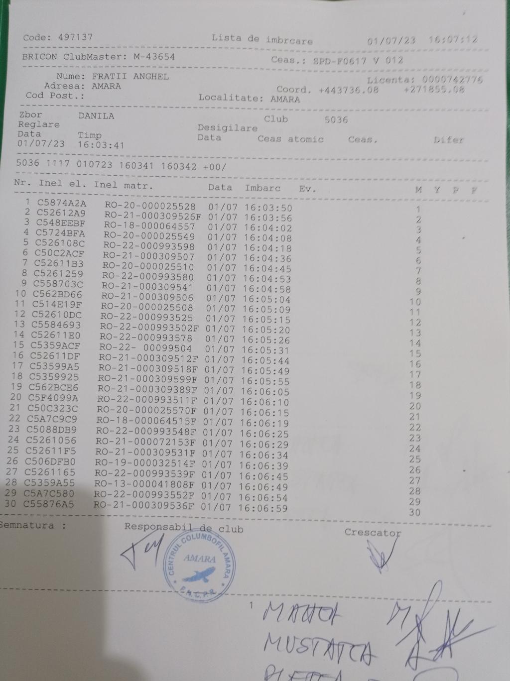| 15 | Mustatea Adrian | IL499 | BRI | Amara | [IMB P0] | [DES P0] |