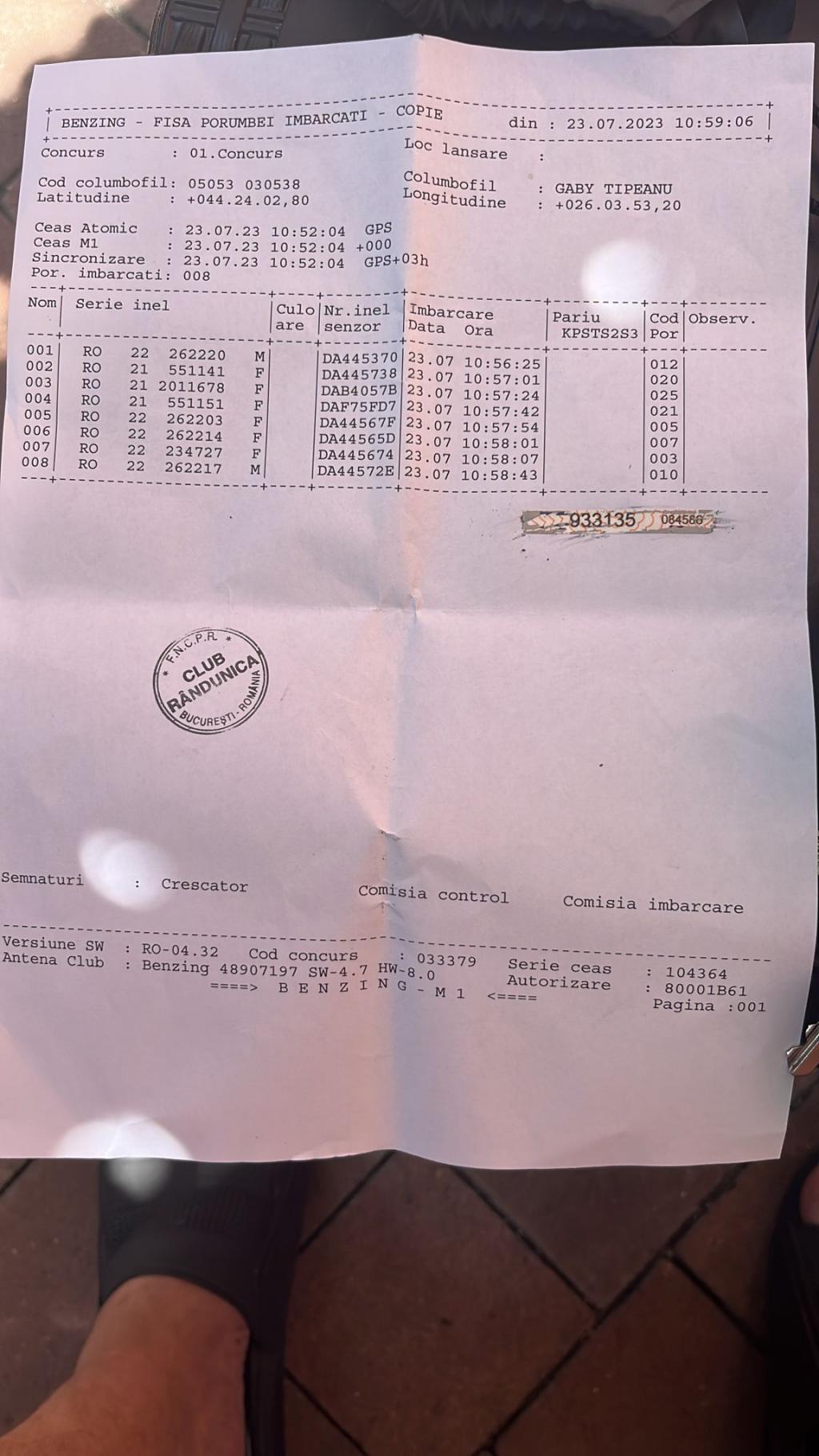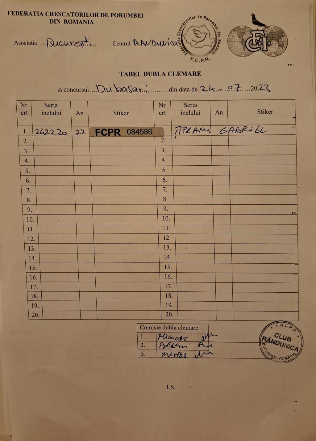 | 122 | Oprea Sorin | BB11029 | BEN | Randunica |