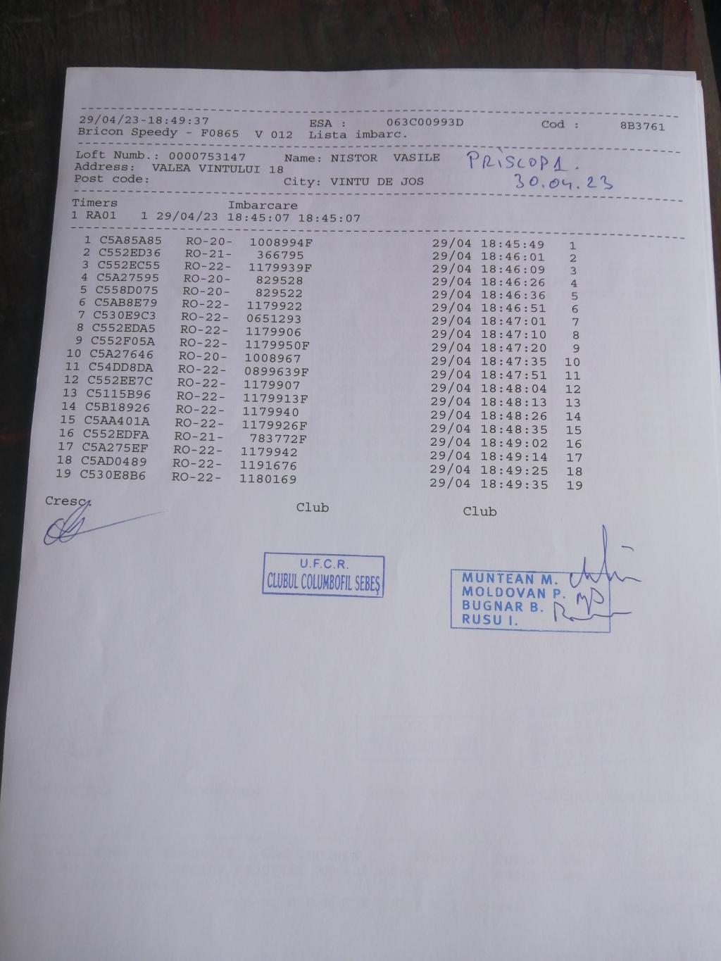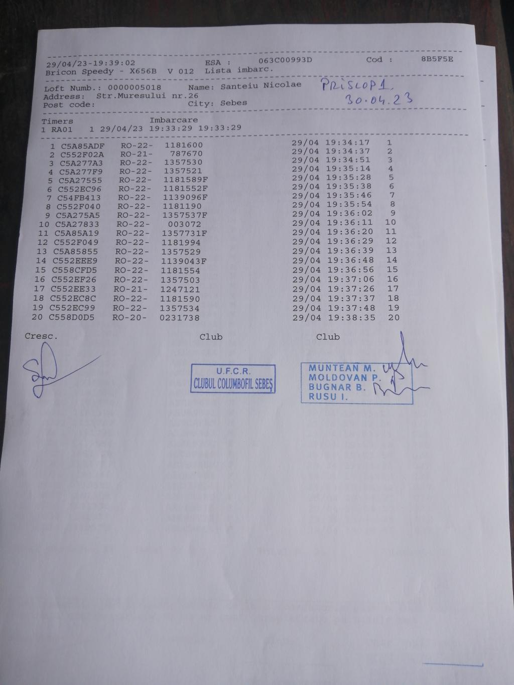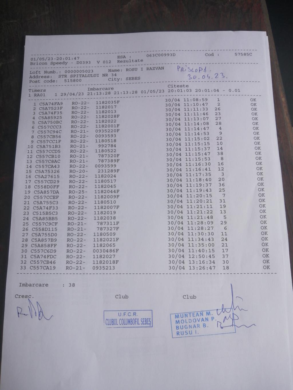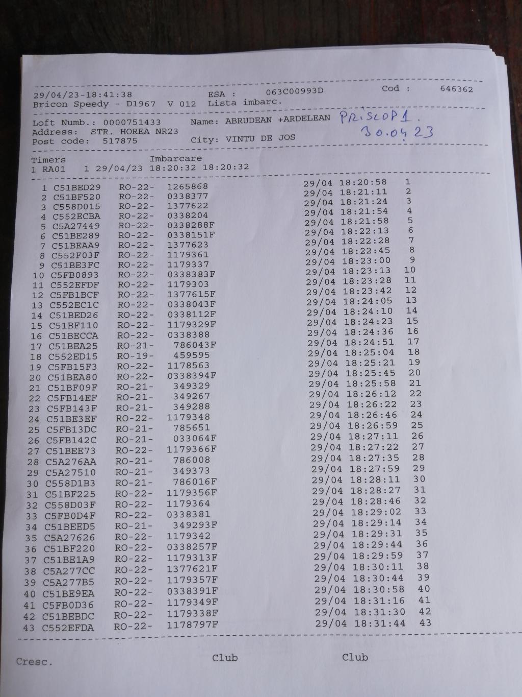 39 | Boescu Ioan | AB443 | BRI | SEBES | [IMB P0] | [DES P0] |