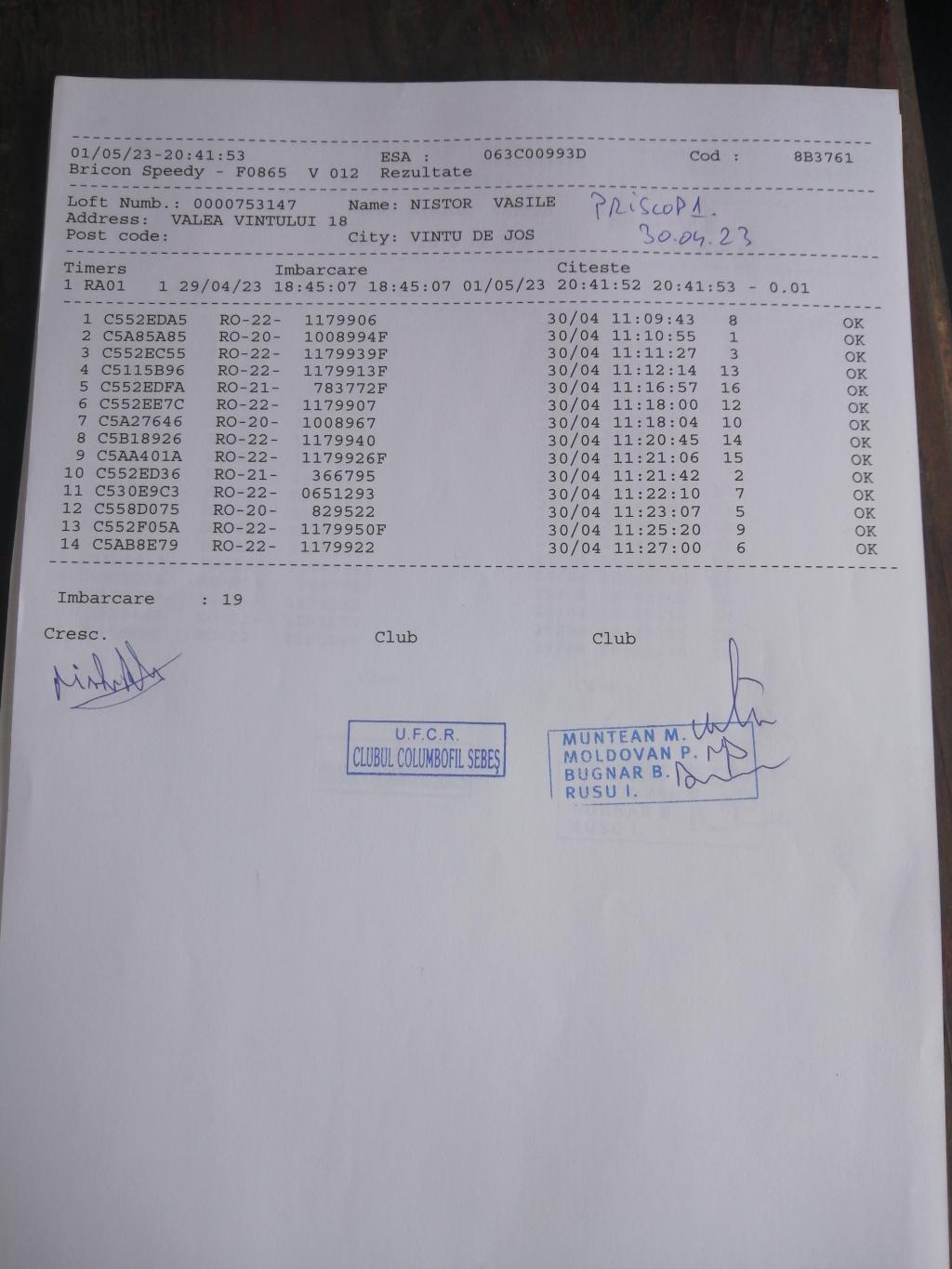 60 | Nistor Vasile | AB1334 | BRI | SEBES | [IMB P0] | [DES P0] |