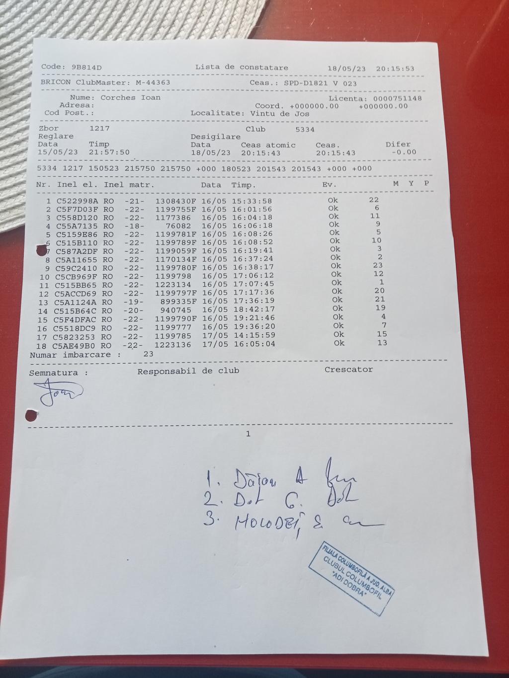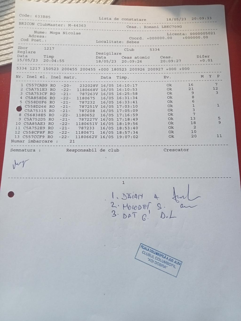 | 33 | Cosercari Claudiu | AB979 | TOP | Oarda |