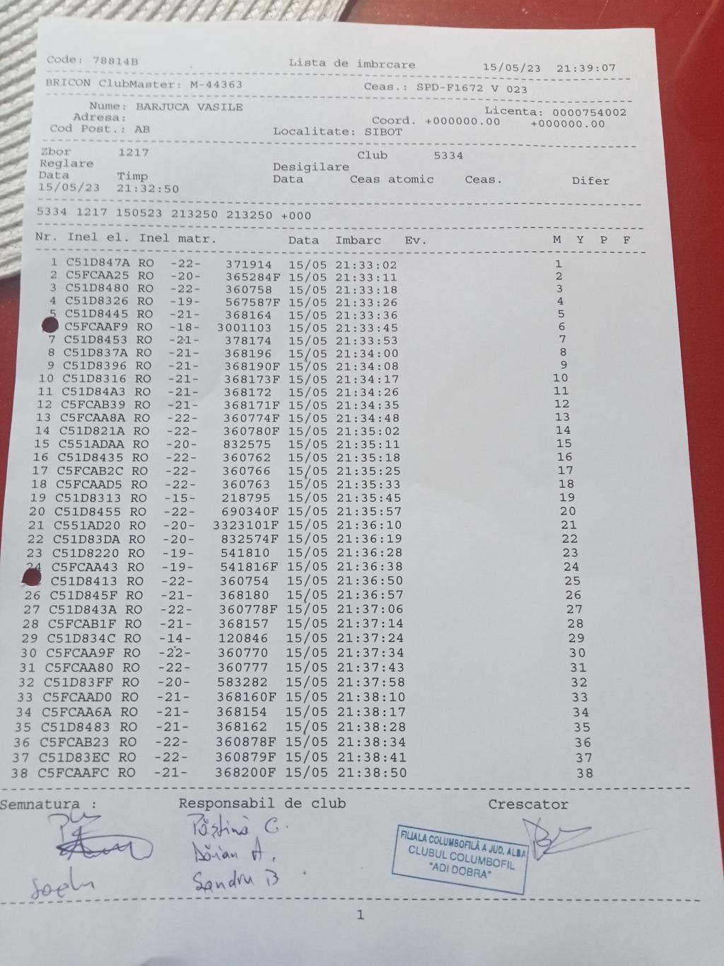 | 42 | Marginean Catalin | AB1225 | TOP | Oarda |
