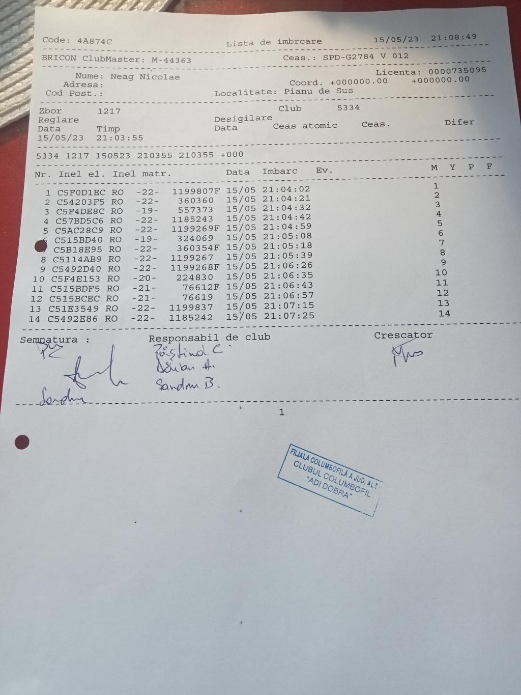 | 15 | Maerescu Catalin | AB1371 | BRI | Adi Dobra |