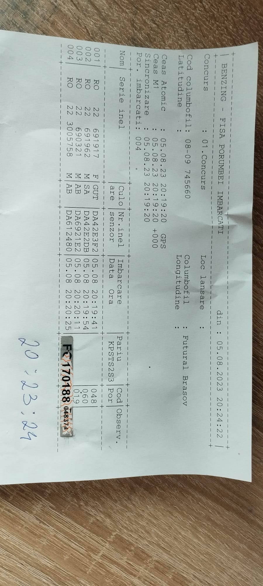SIGILARE: [Sigilare auto Bv.16.ZHC centrul Sighisoara fond 5, Miechow] [Masina Bv.16.ZHC a fost implicata intrun accident. Porumbeii se vor transfera in Auto Ab.09.BDY] [Sigilare auto Ab.09.BDY ,dupa transferul porumbeilor din Bv.16.ZHC,destinatie Michow] |