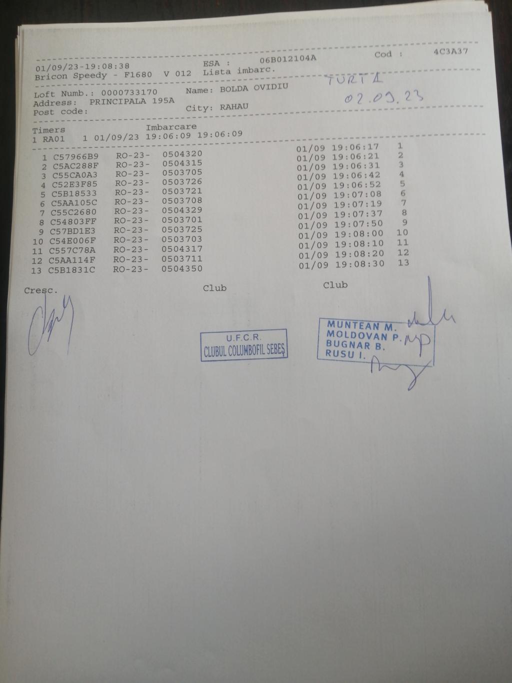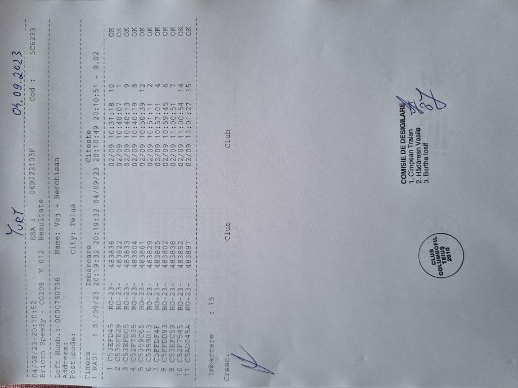 SIGILARE: [sigilare conc .turt 1 centru Sebes] [Sigilii centru Sebes] [Sigilii centru Alba-Iulia plecare Teius] [Sosire centru Teius ] [Sigilare Club Teius ] |