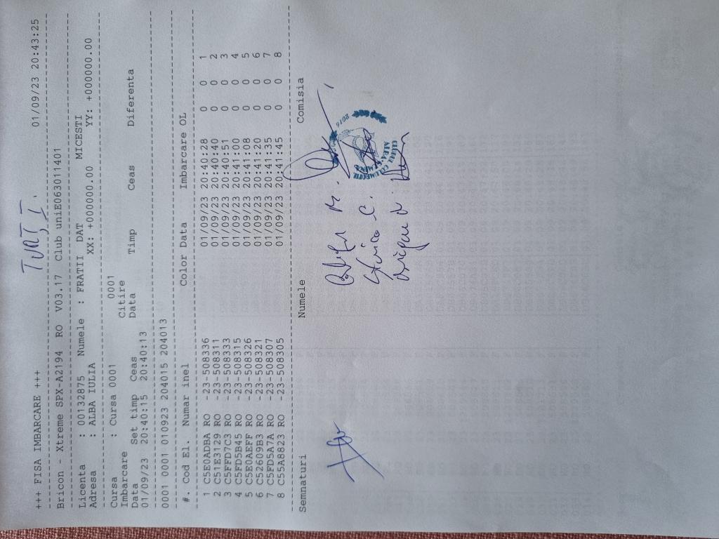 1. Procese verbale de imbarcare: | ||||