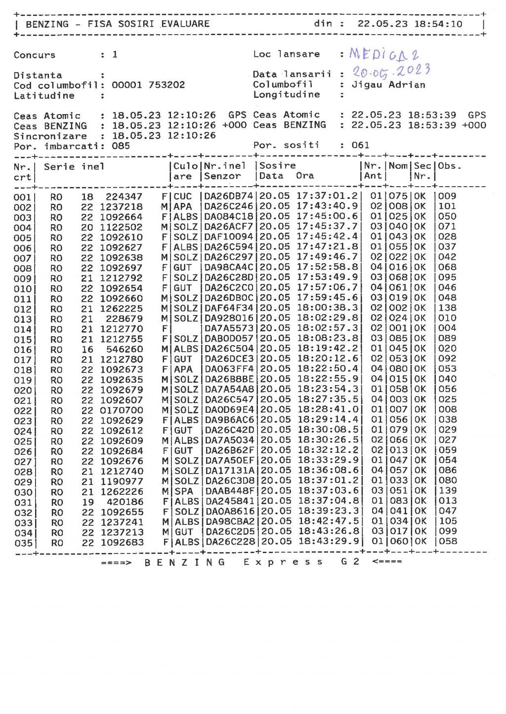 | 175 | Tancu Viorel | NT521 | BEN | Tg-neamt | [IMB P0] [IMB P1] | [DES P0] [DES P1] |