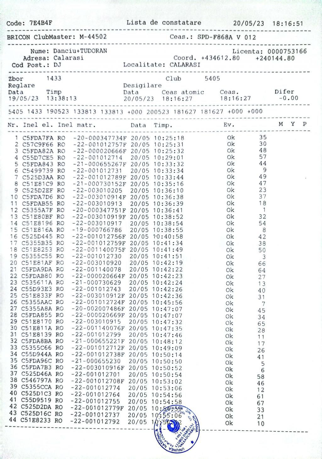 | 192 | Badoi Marius | DJ613 | TOP | Leu |
