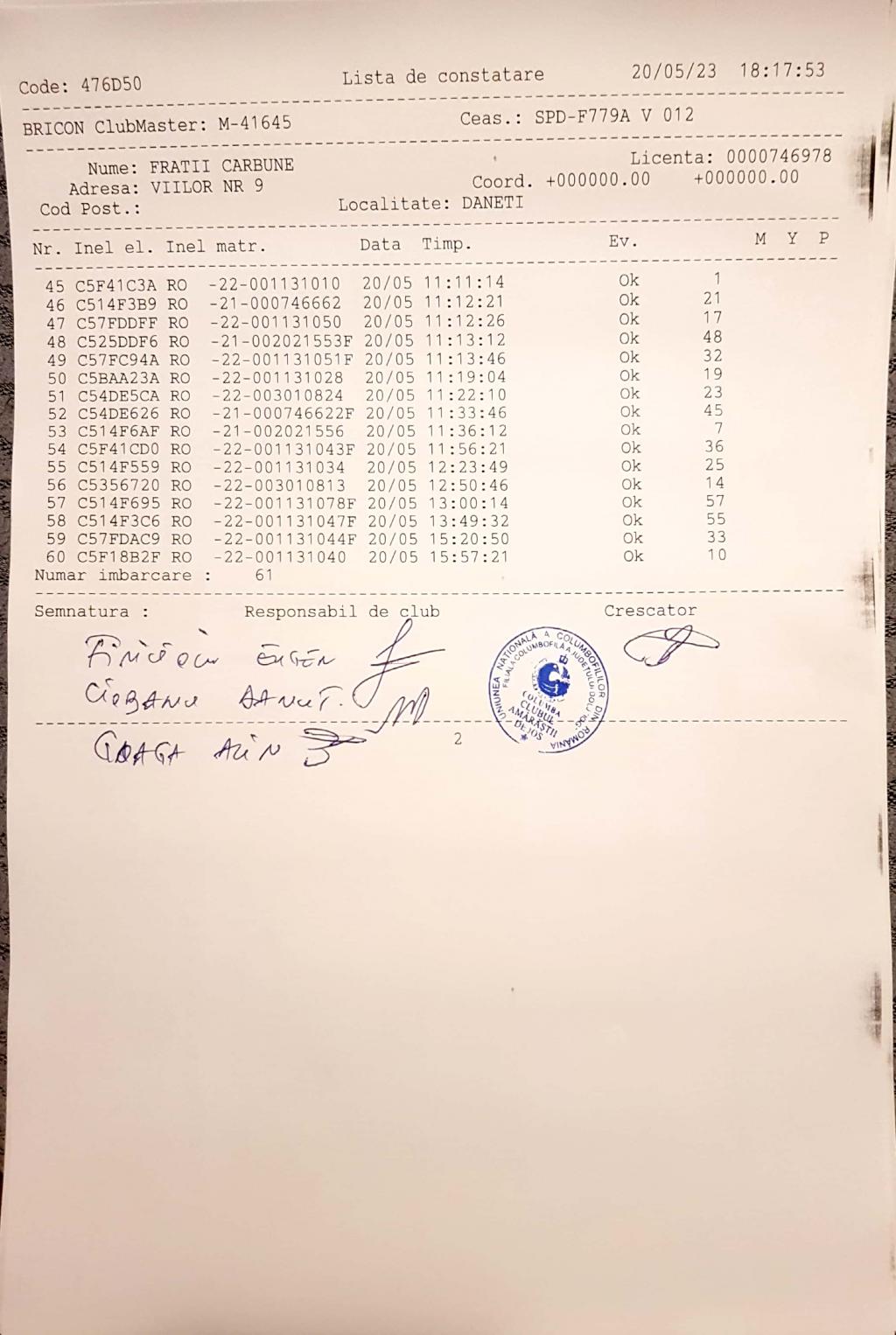 | 217 | Luca Laurentiu Ionut | DJ609 | TOP | Leu |