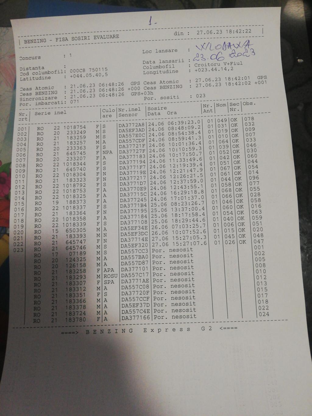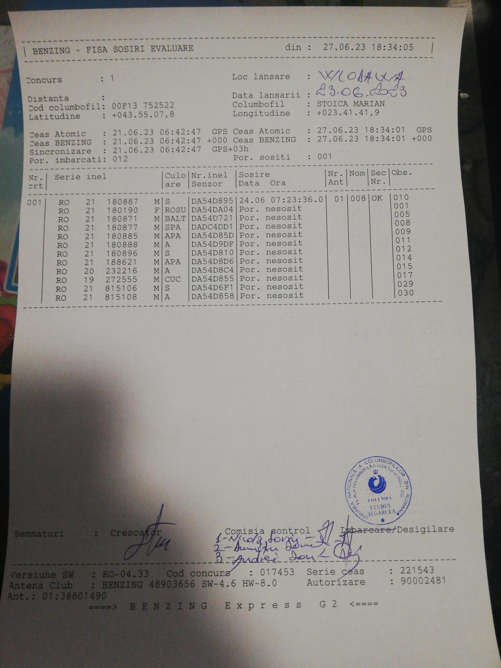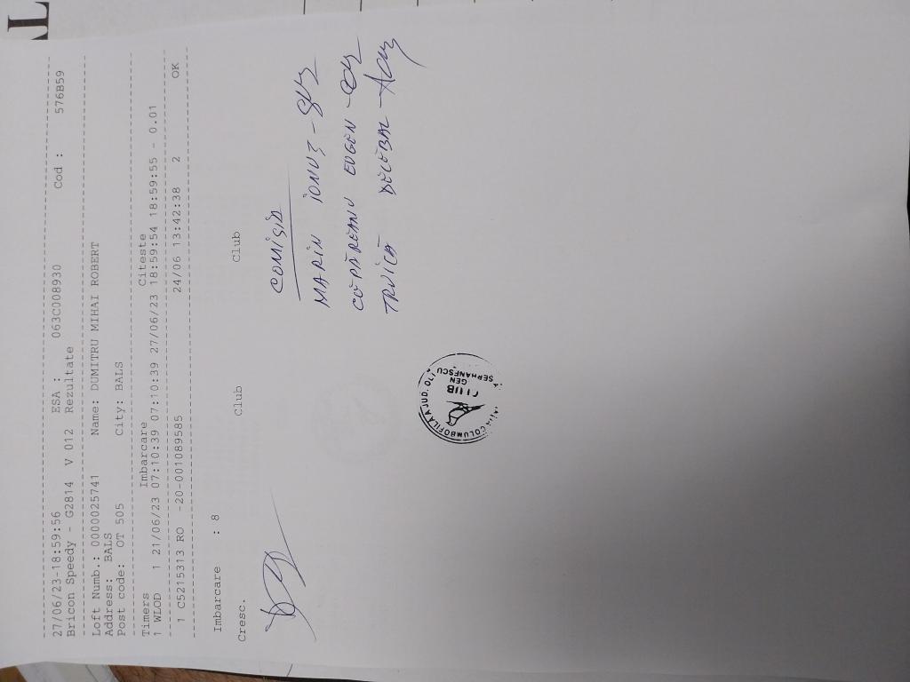 | 1 | Balea Marius Viorel | OT1926 | BEN | Bals | [IMB P0] | [DES P0] |