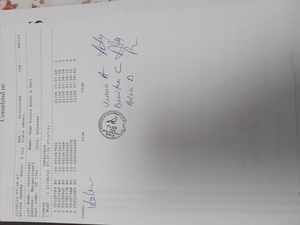 | 5 | Buciu Ion | OT1307 | TOP | Bals |