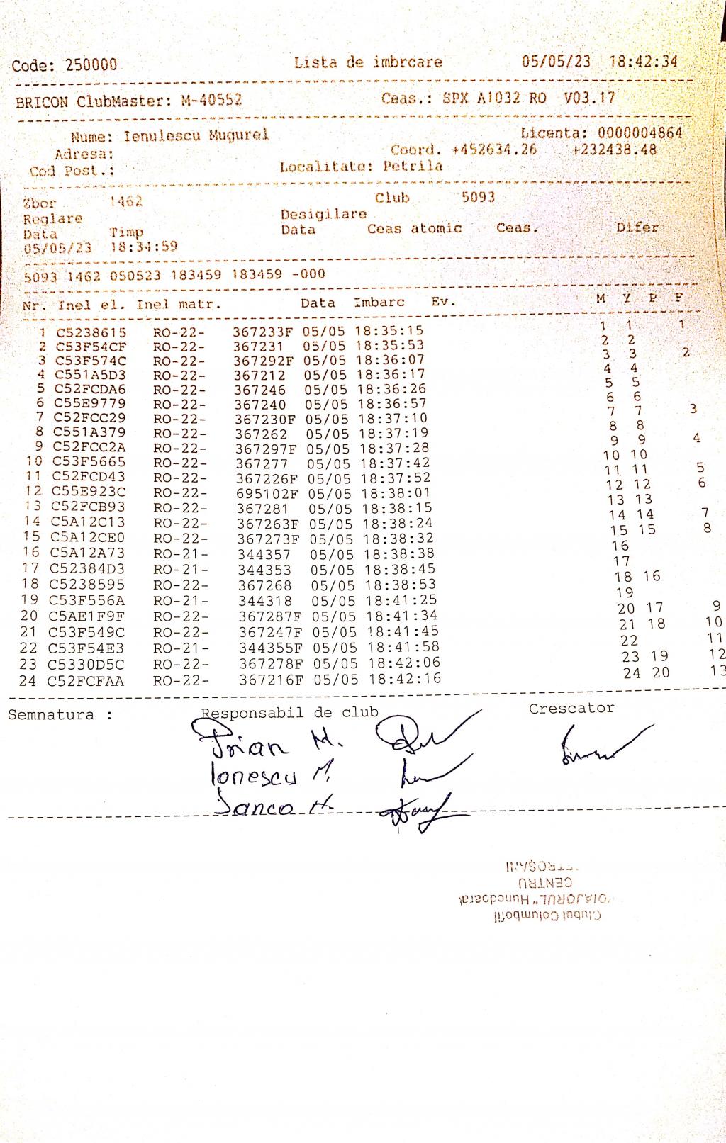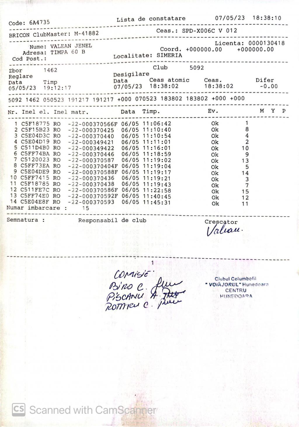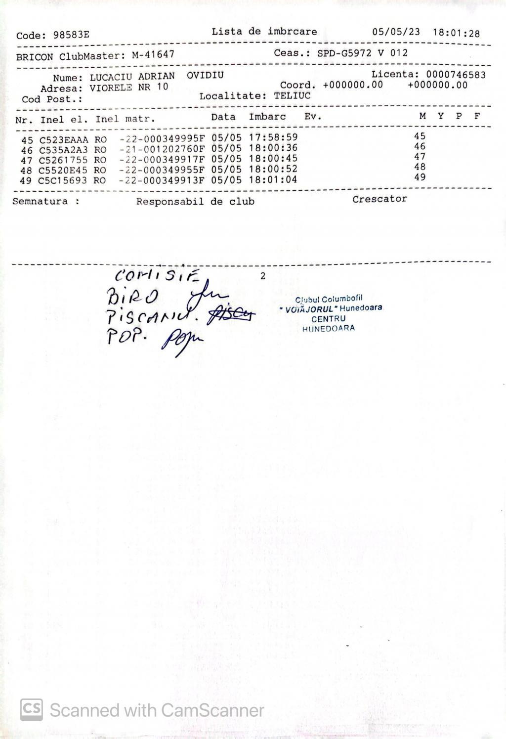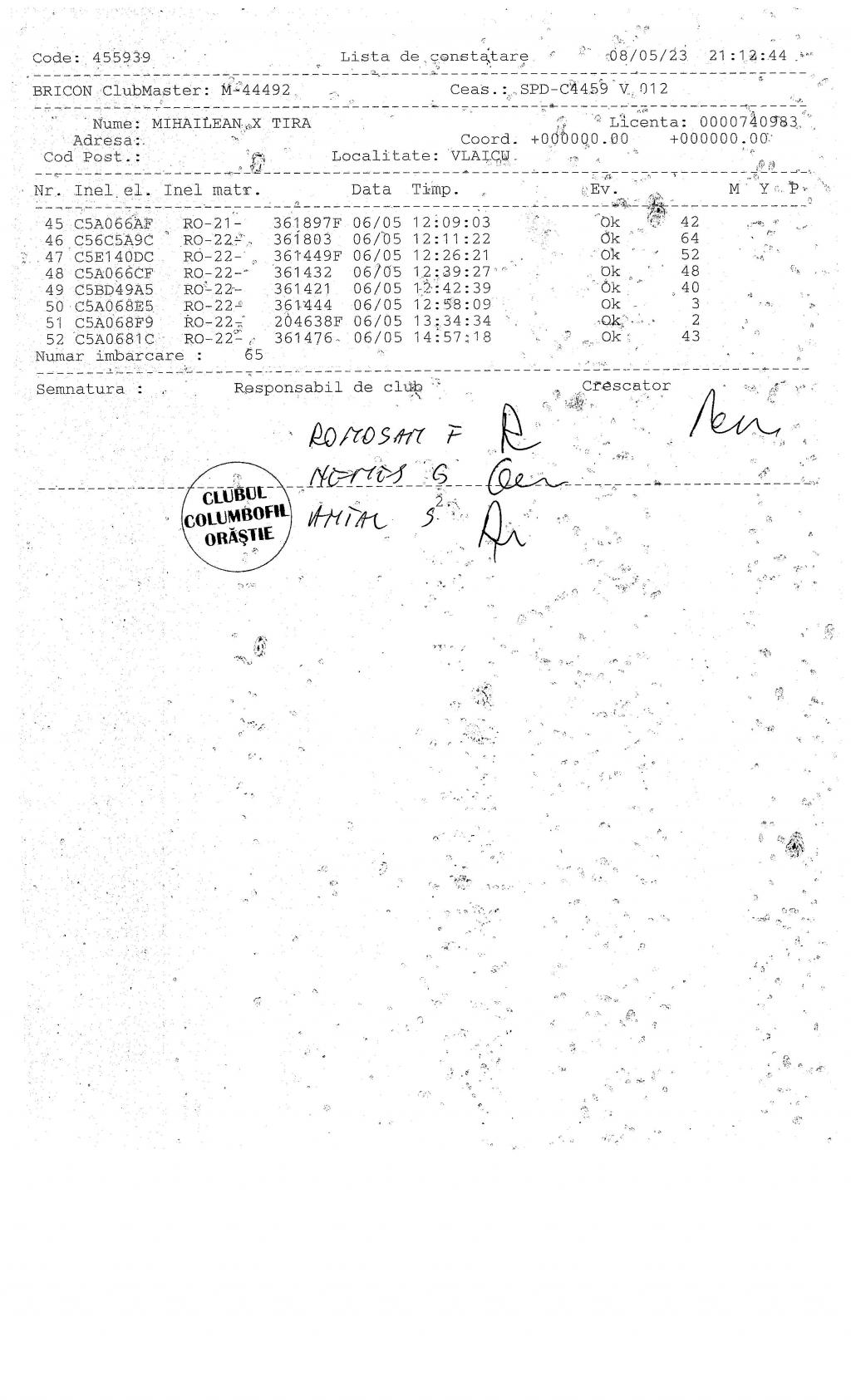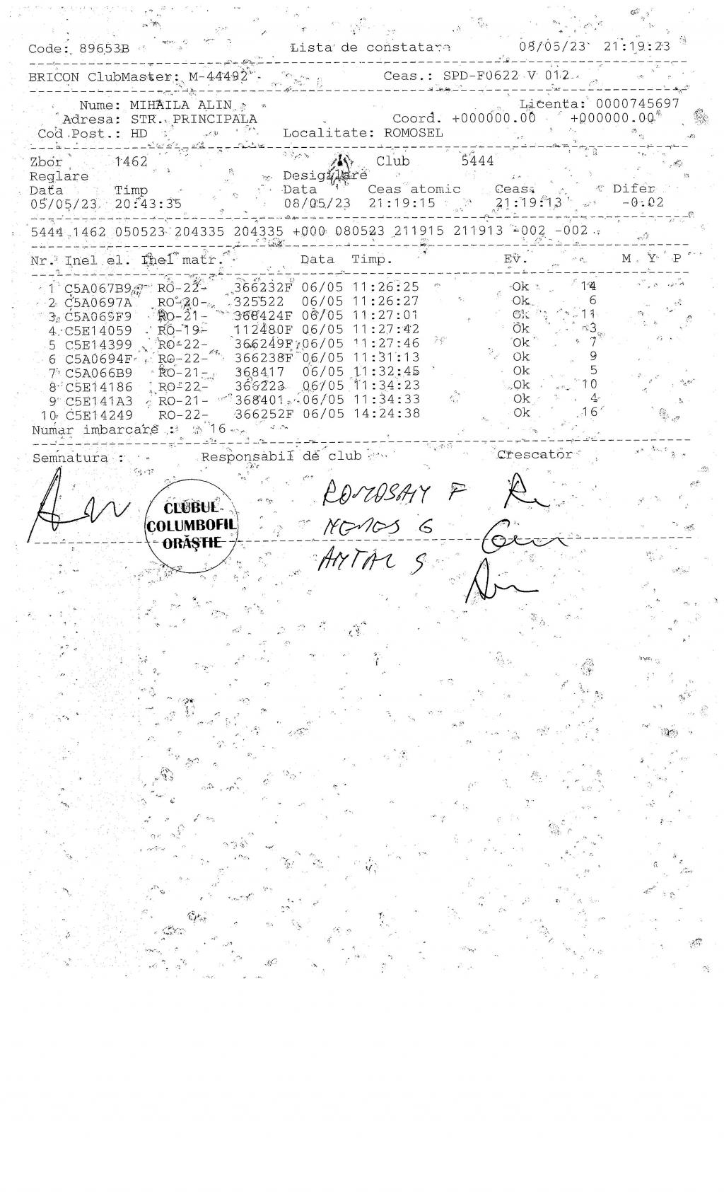 | 202 | Renghea Florin | HD912 | TOP | Simeria |
