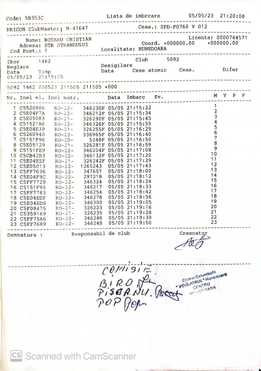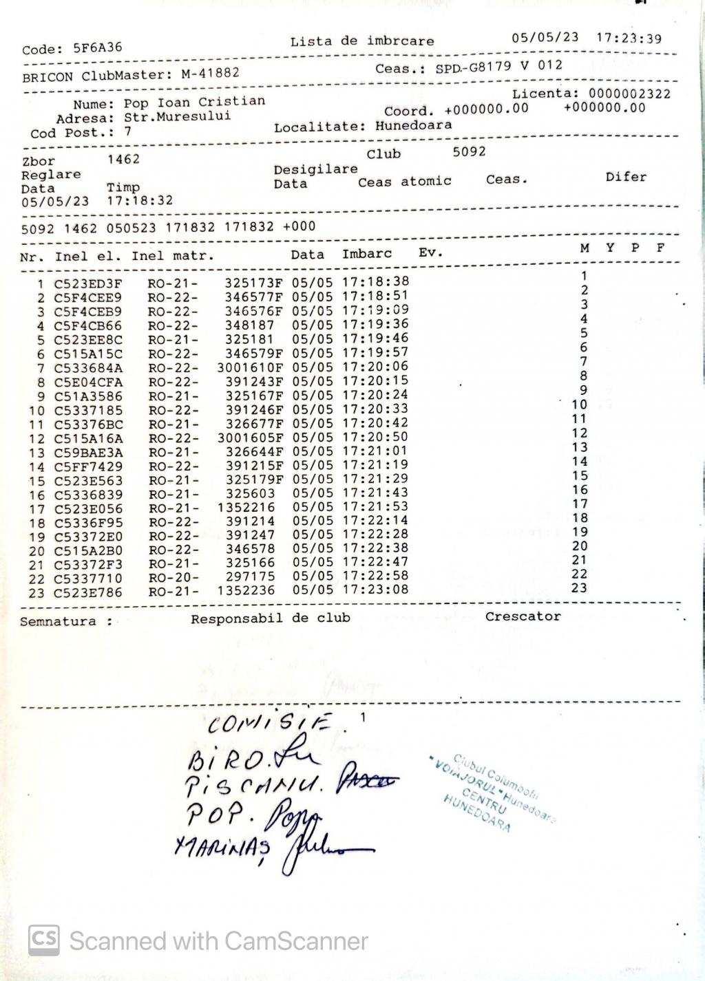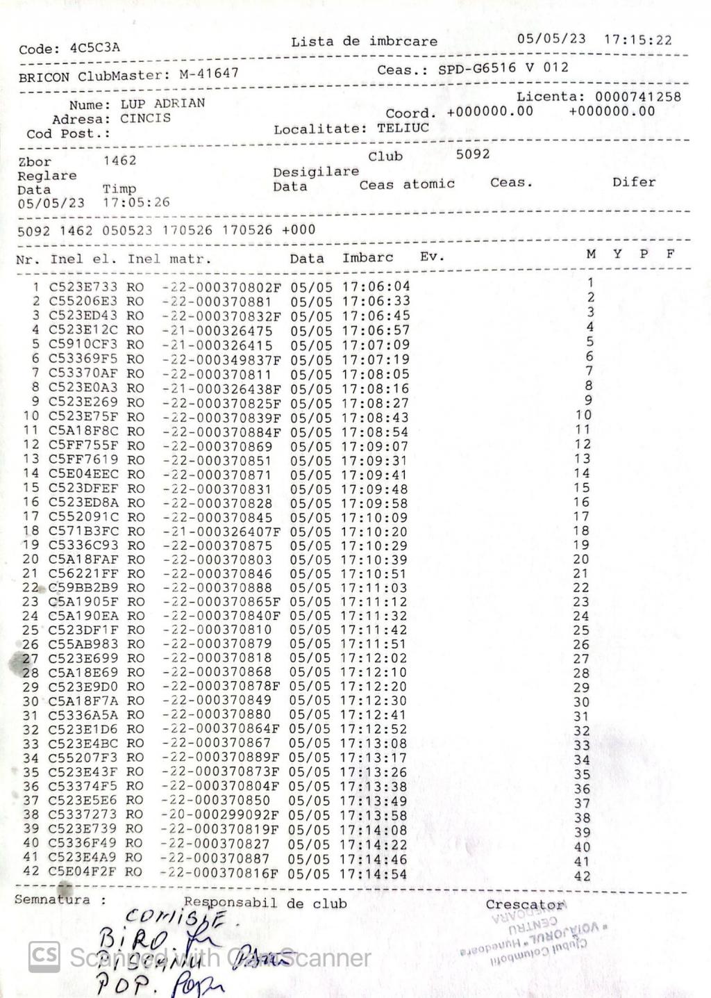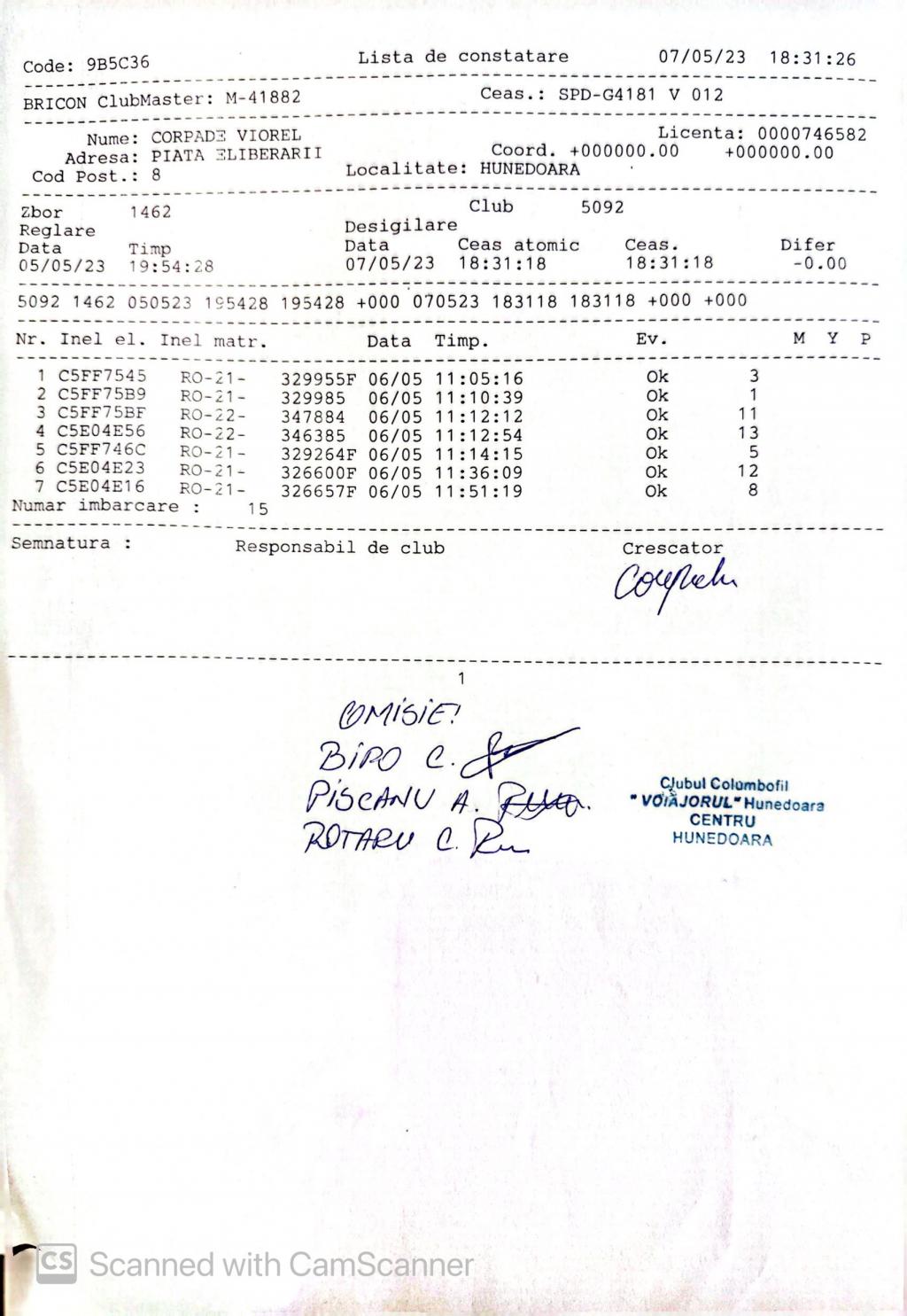 | 202 | Renghea Florin | HD912 | TOP | Simeria |