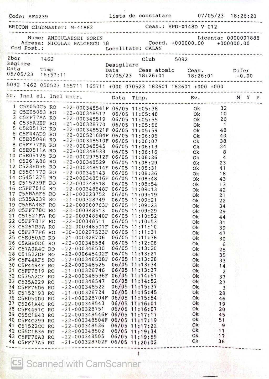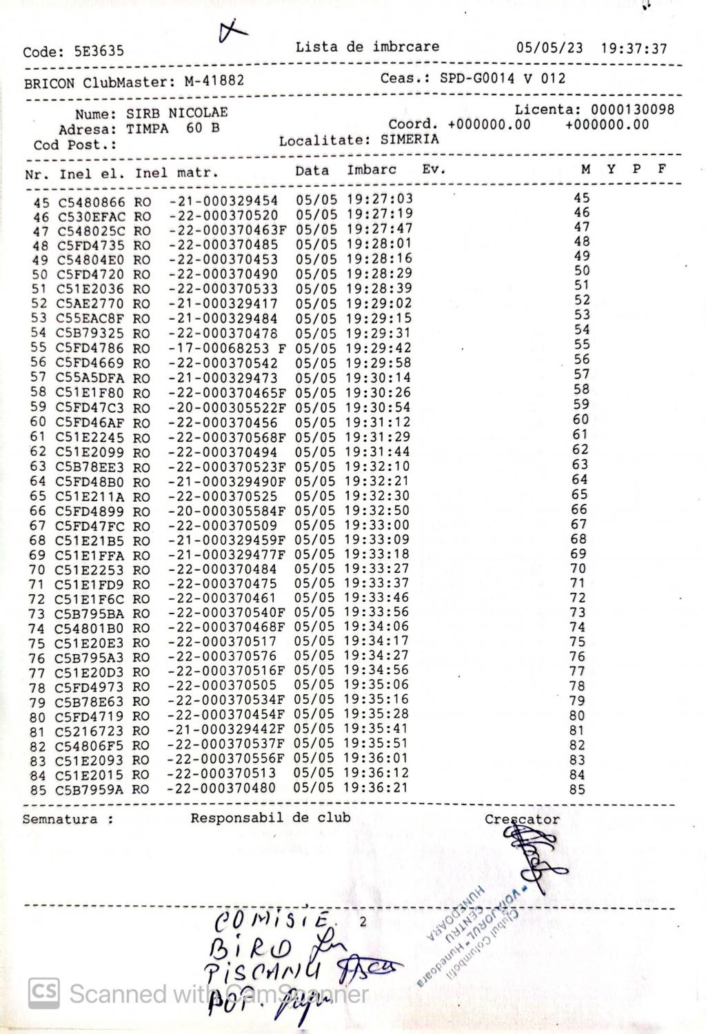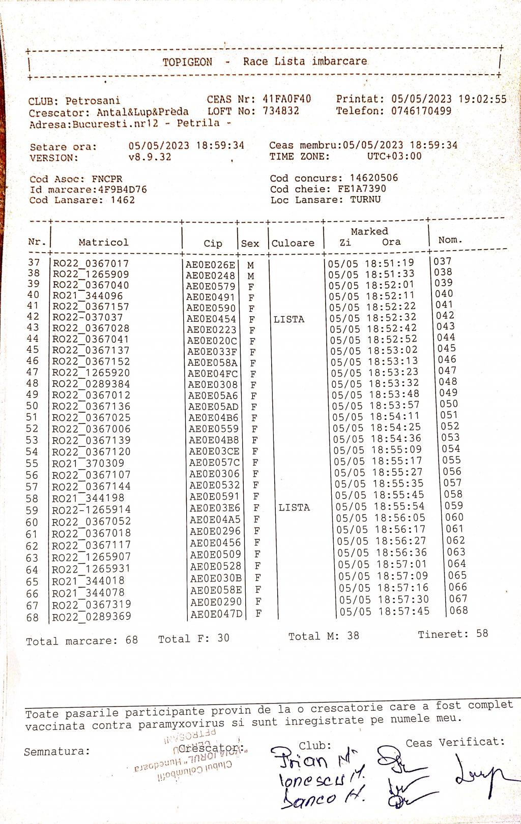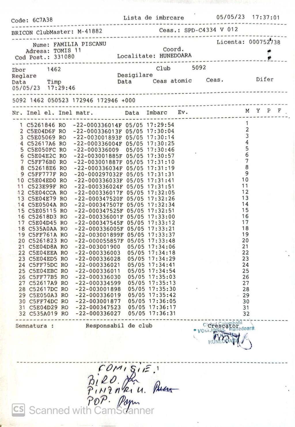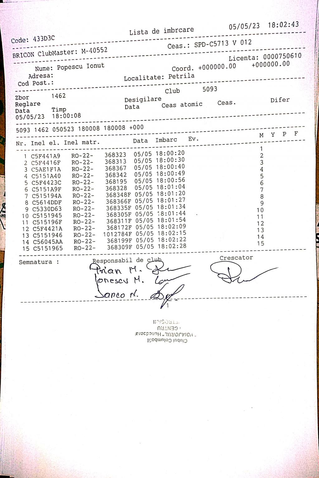 | 202 | Renghea Florin | HD912 | TOP | Simeria |