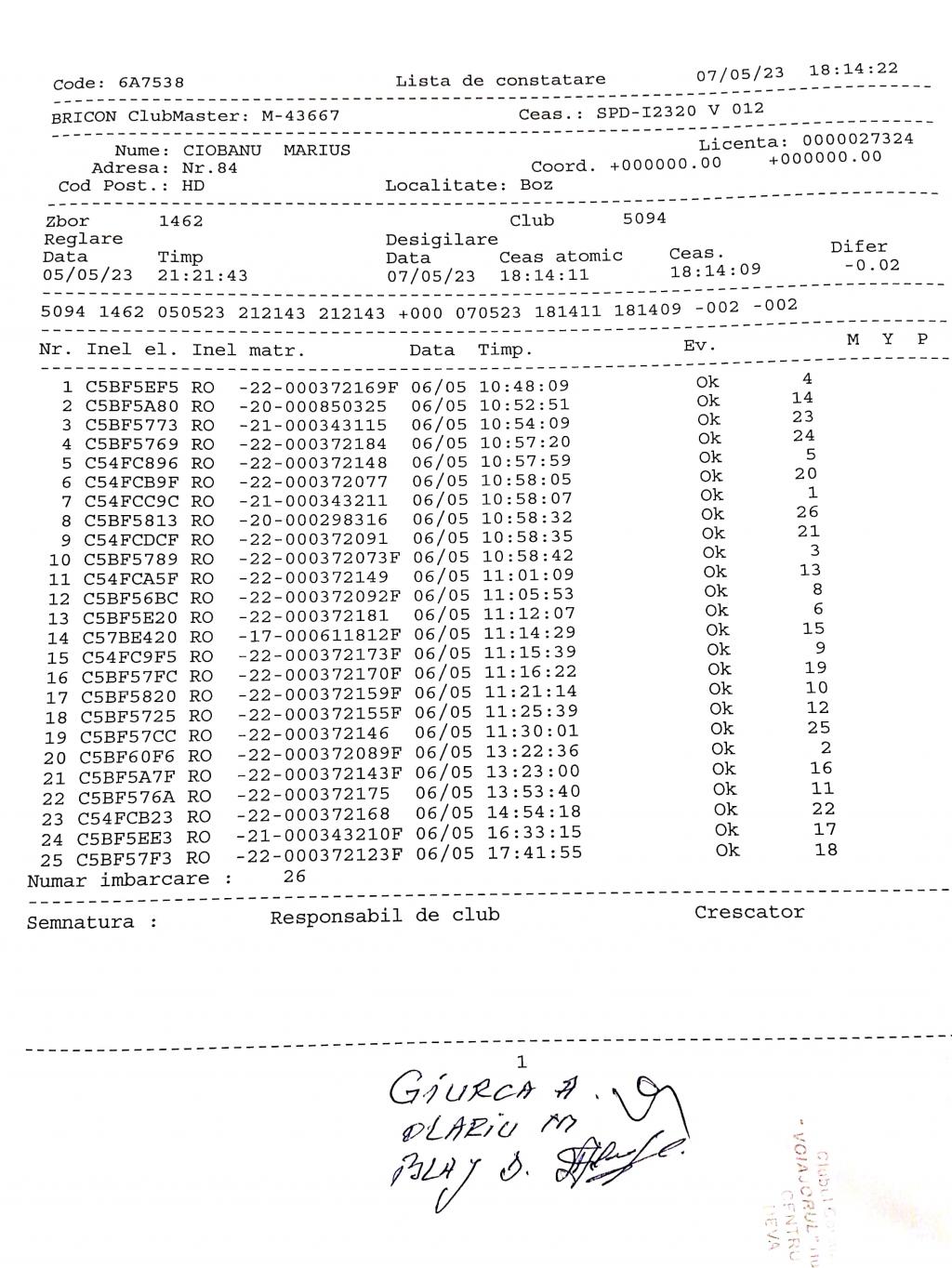 | 26 | Mygu Razvan | HD1413 | TOP | BRAD |