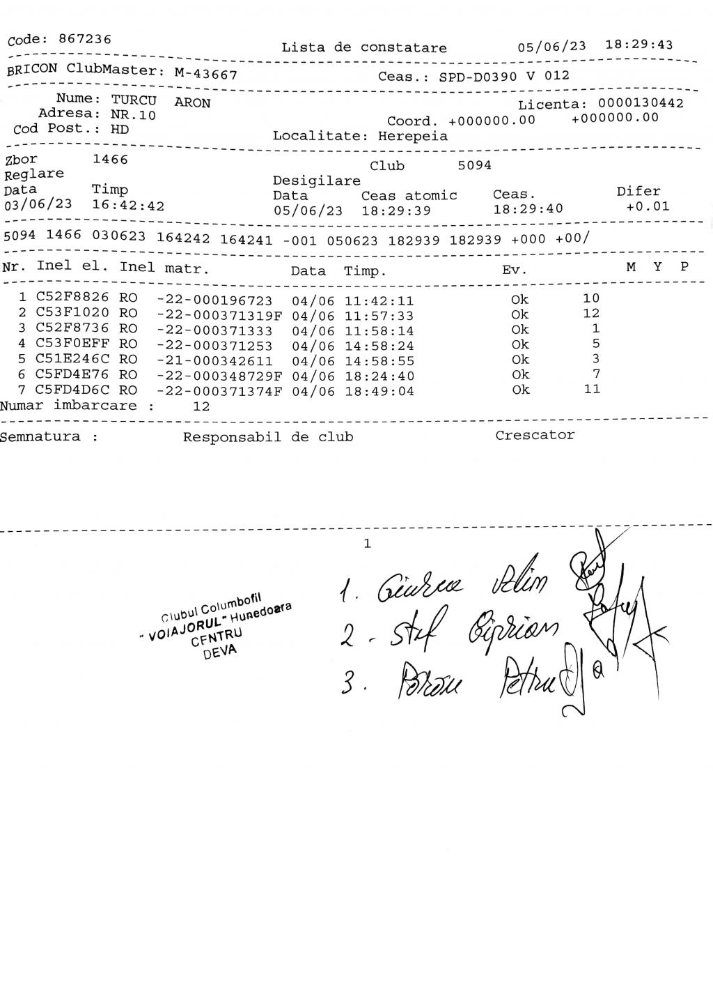 | 133 | Renghea Florin | HD912 | TOP | Simeria |