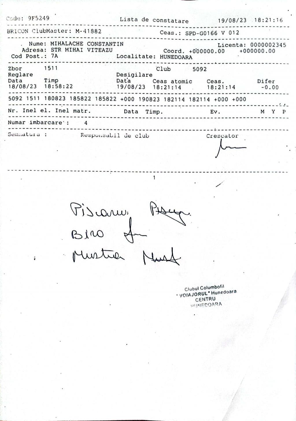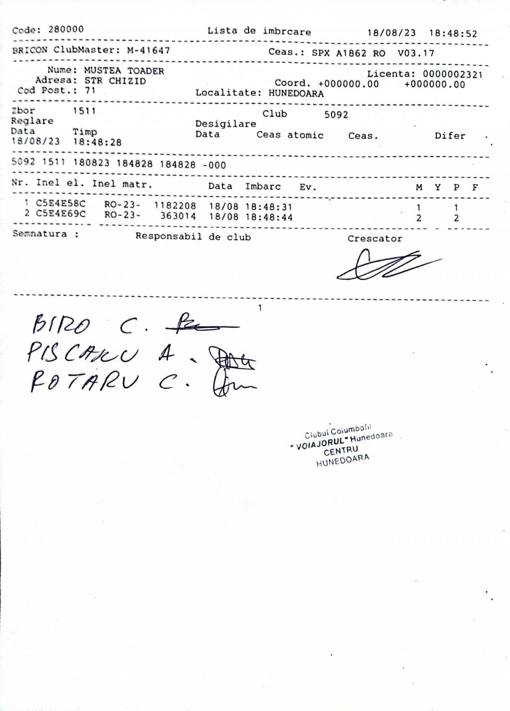 | 123 | Butnaru Sandu Mihai | HD1385 | TOP | Simeria |