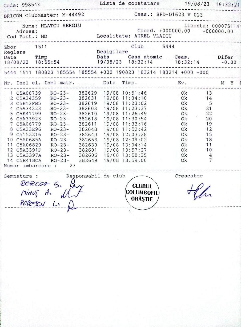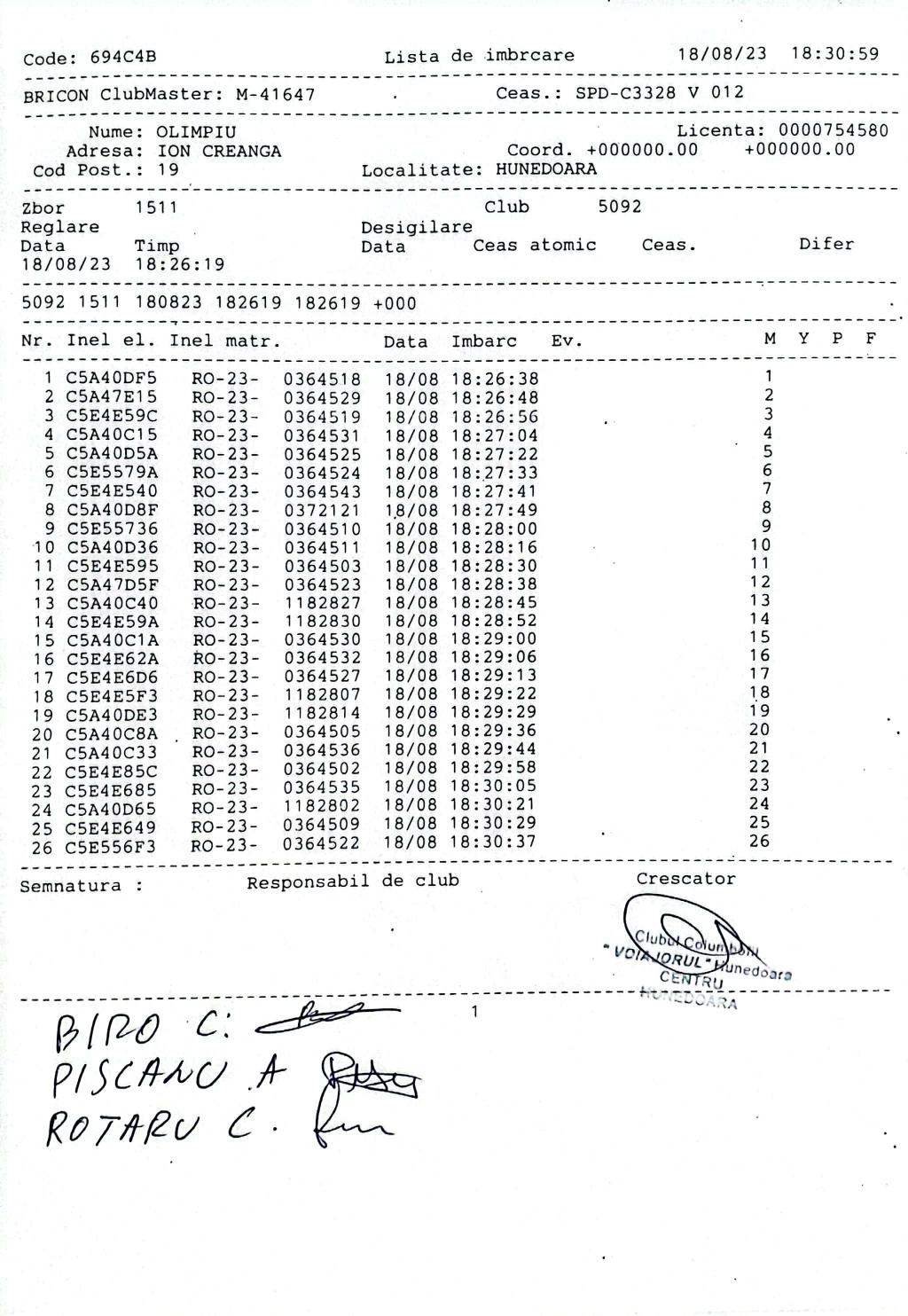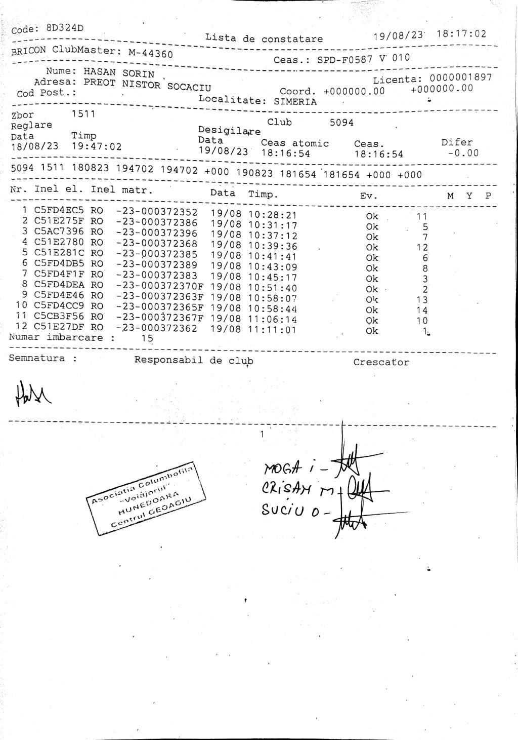 | 135 | Renghea Florin | HD912 | TOP | Simeria |