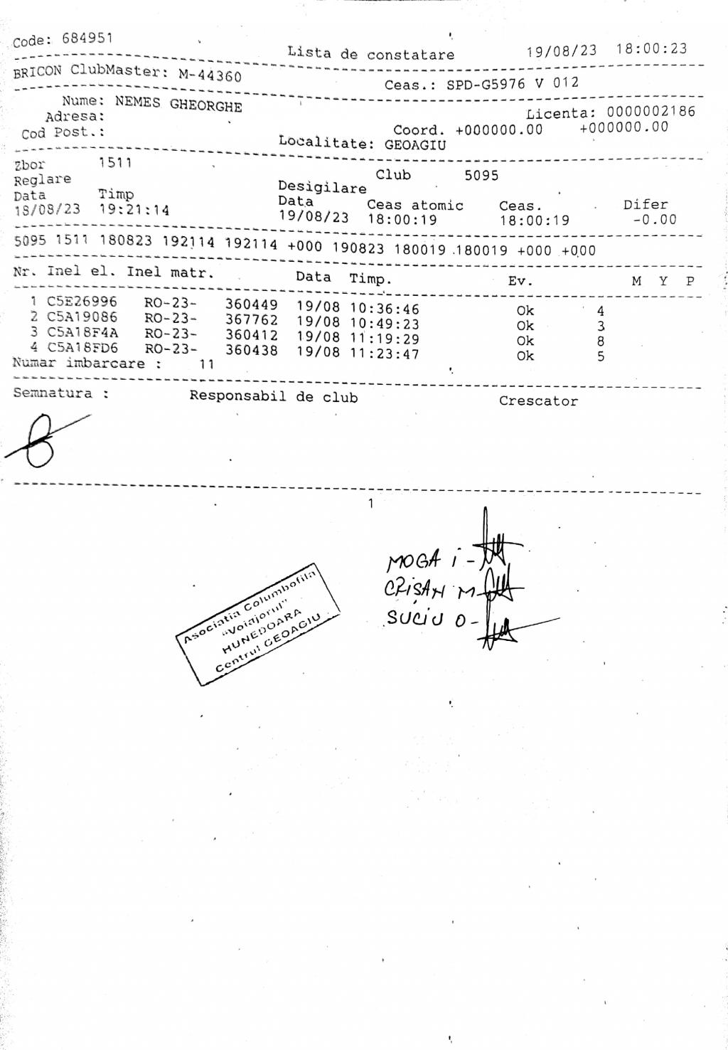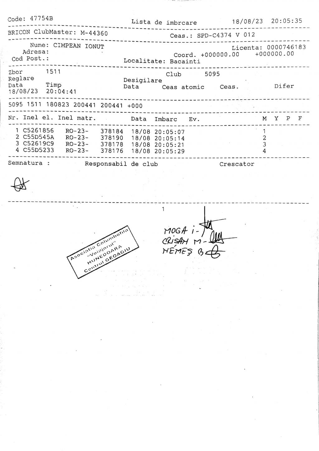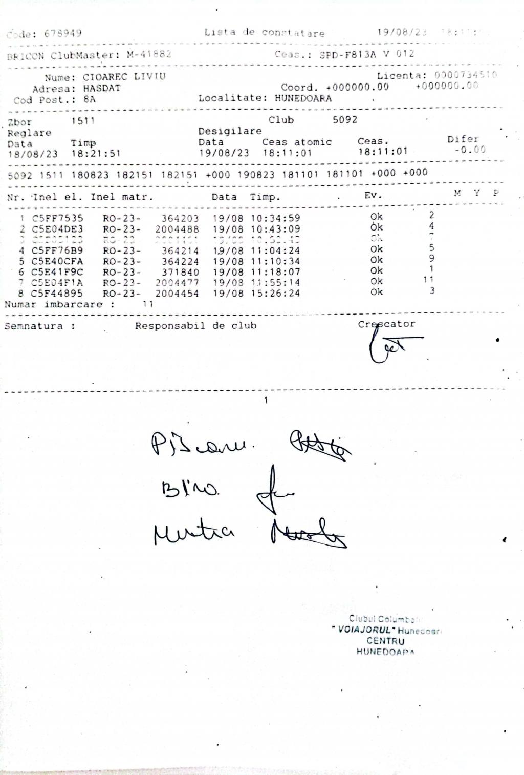 | 135 | Renghea Florin | HD912 | TOP | Simeria |