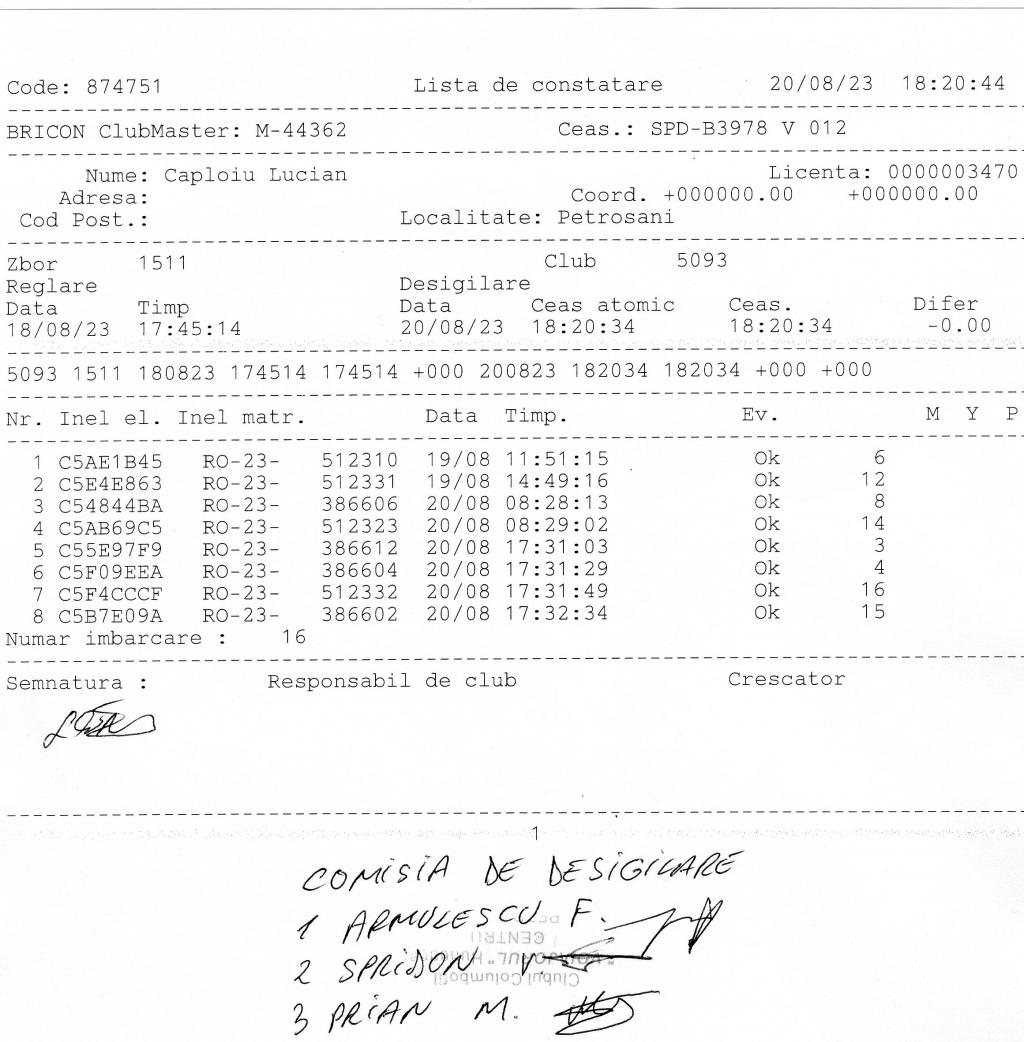 | 8 | Florea Bogdan | HD1393 | TOP | BRAD |
