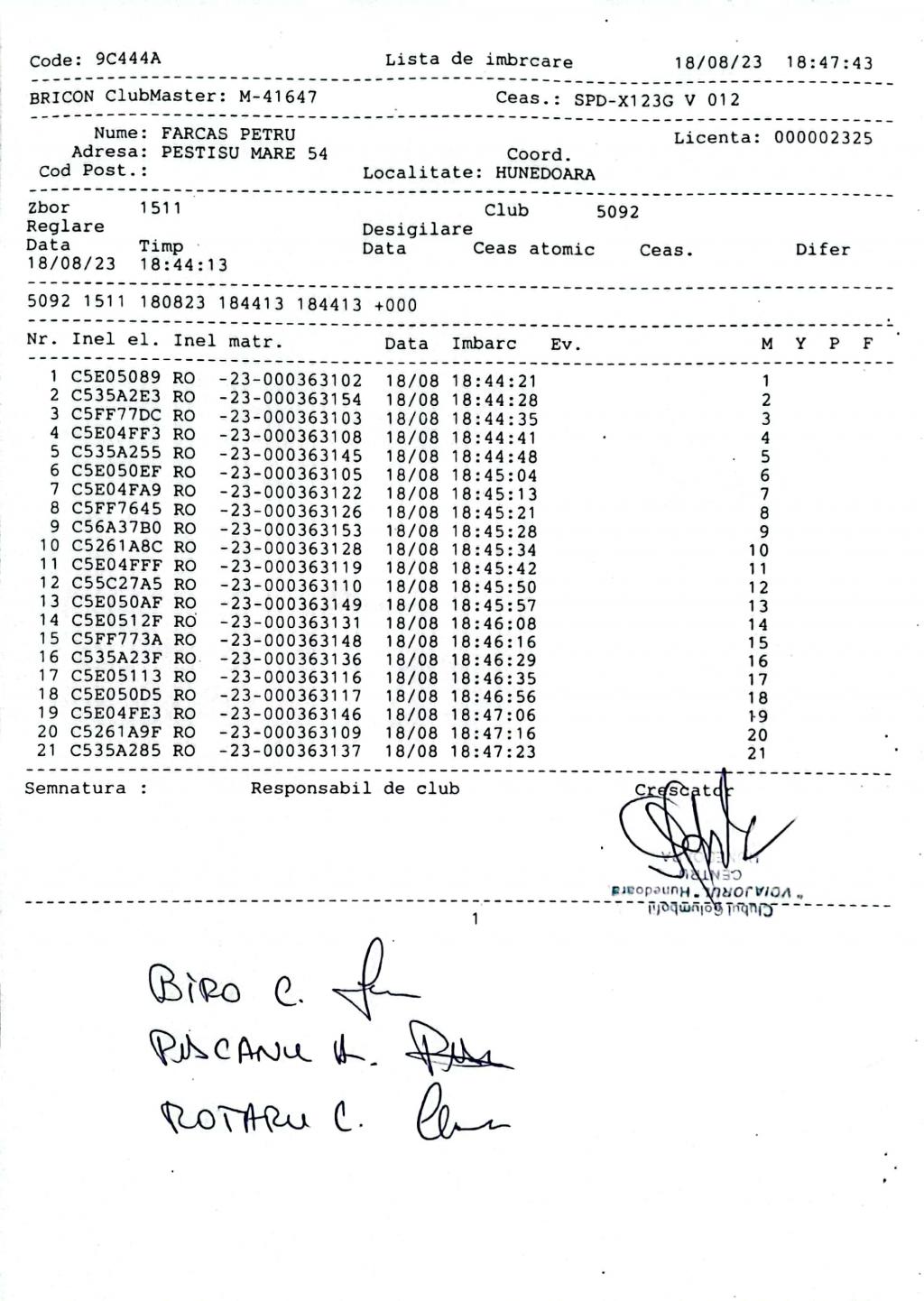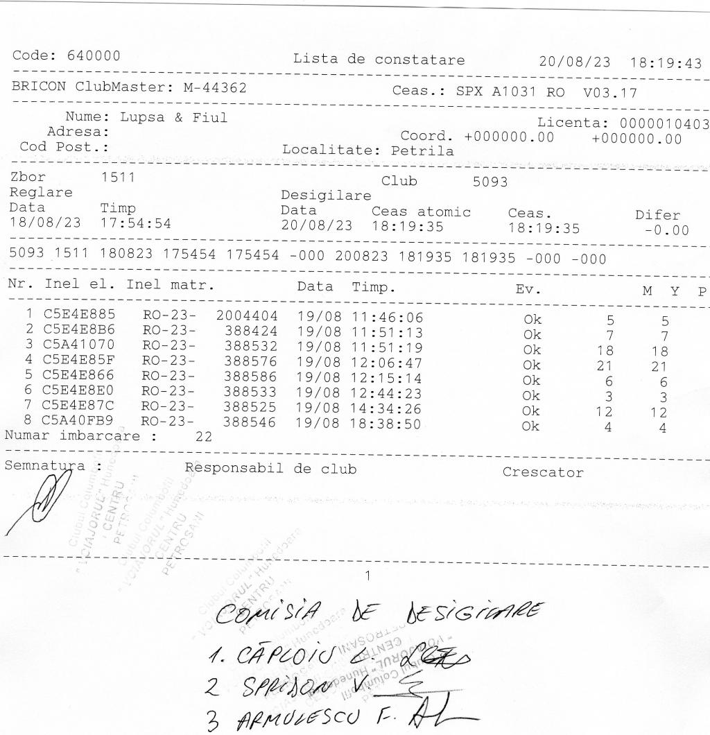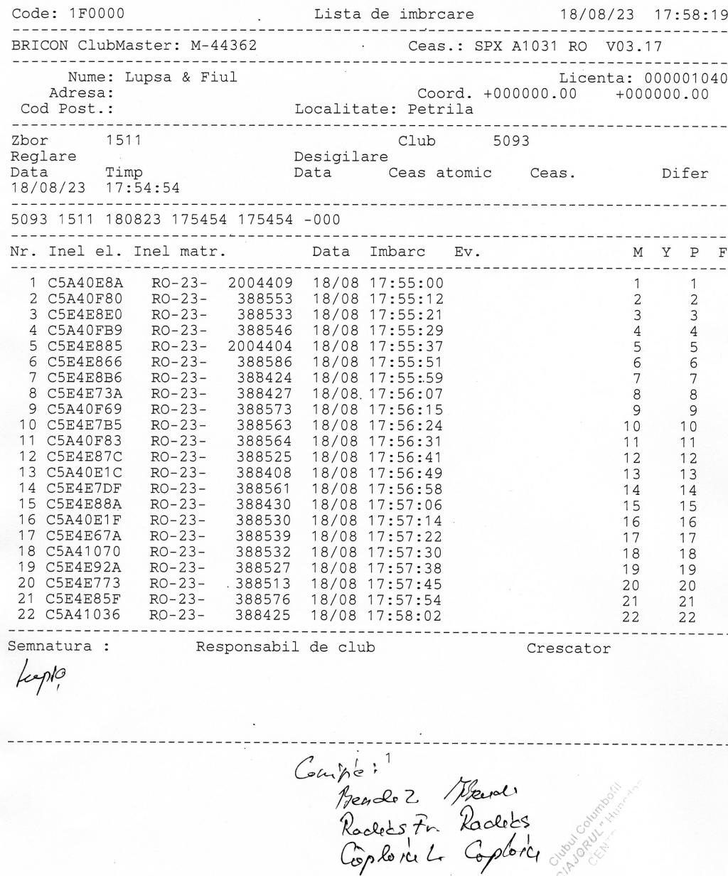 | 23 | Sandru Madalin | HD1142 | TOP | BRAD |