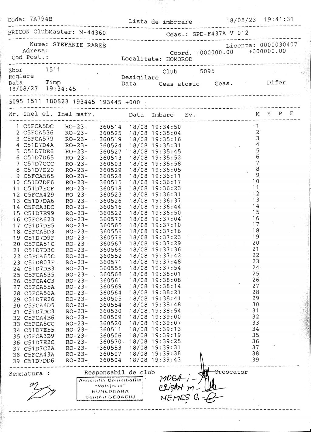 | 38 | Moga Petru Ciprian | HD294 | TOP | Deva |